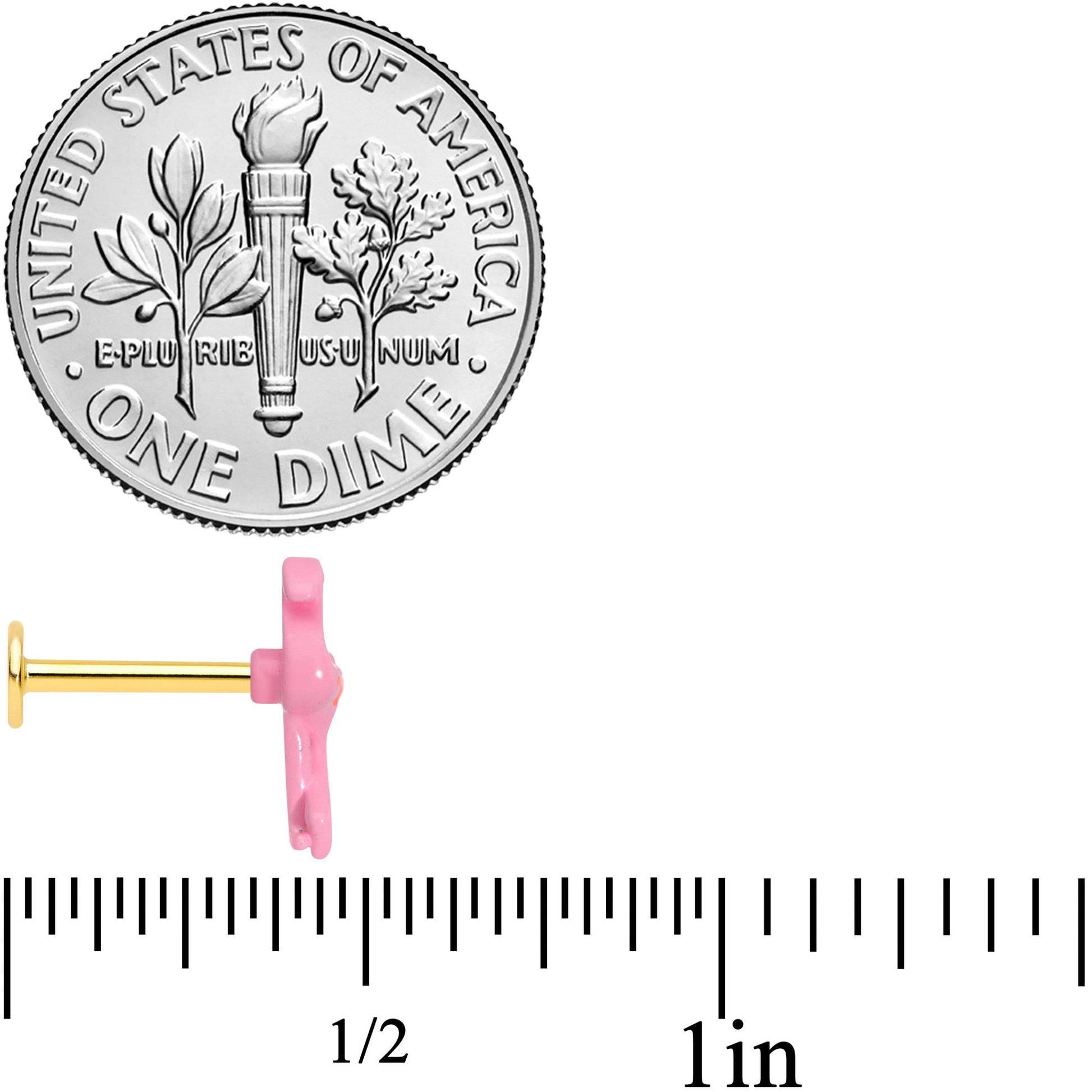 Celebrate summer or taste the tropics with this 16 gauge lip ring! It's made with an 8mm gold tone PVD over 316L surgical grade stainless steel straight barbell with a flat disc end. The opposite end features a pink flamingo charm. You can flaunt this flamingo in multiple piercings including your monroe, and lip as well as cartilage piercings like the helix, tragus, and some conch piercings. No matter what the weather brings, you can sport a summery style with this fabulous, floral, flamingo cartilage jewelry!Specifications