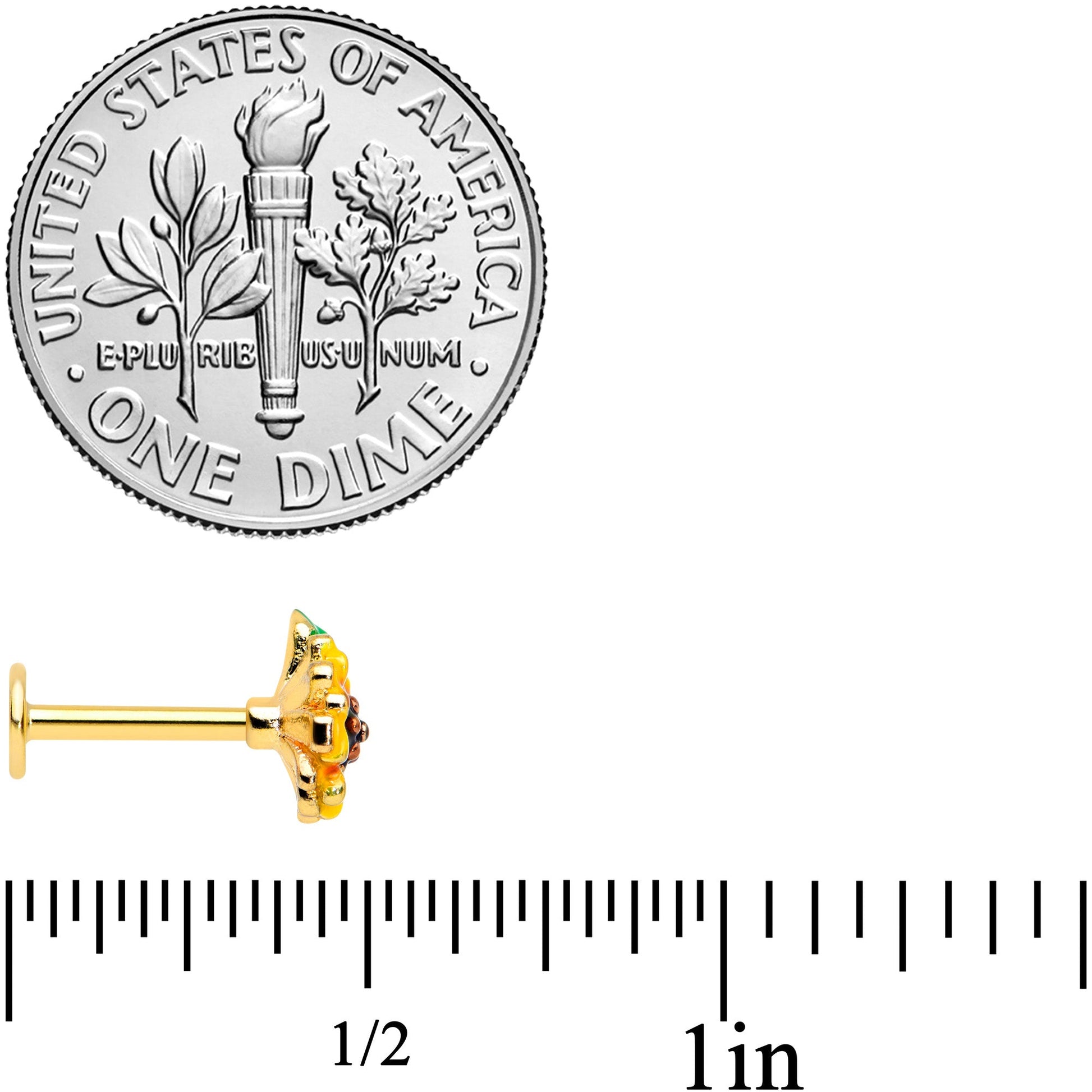 16 Gauge 5/16 Gold Tone Summer Sunflower Labret Monroe Tragus