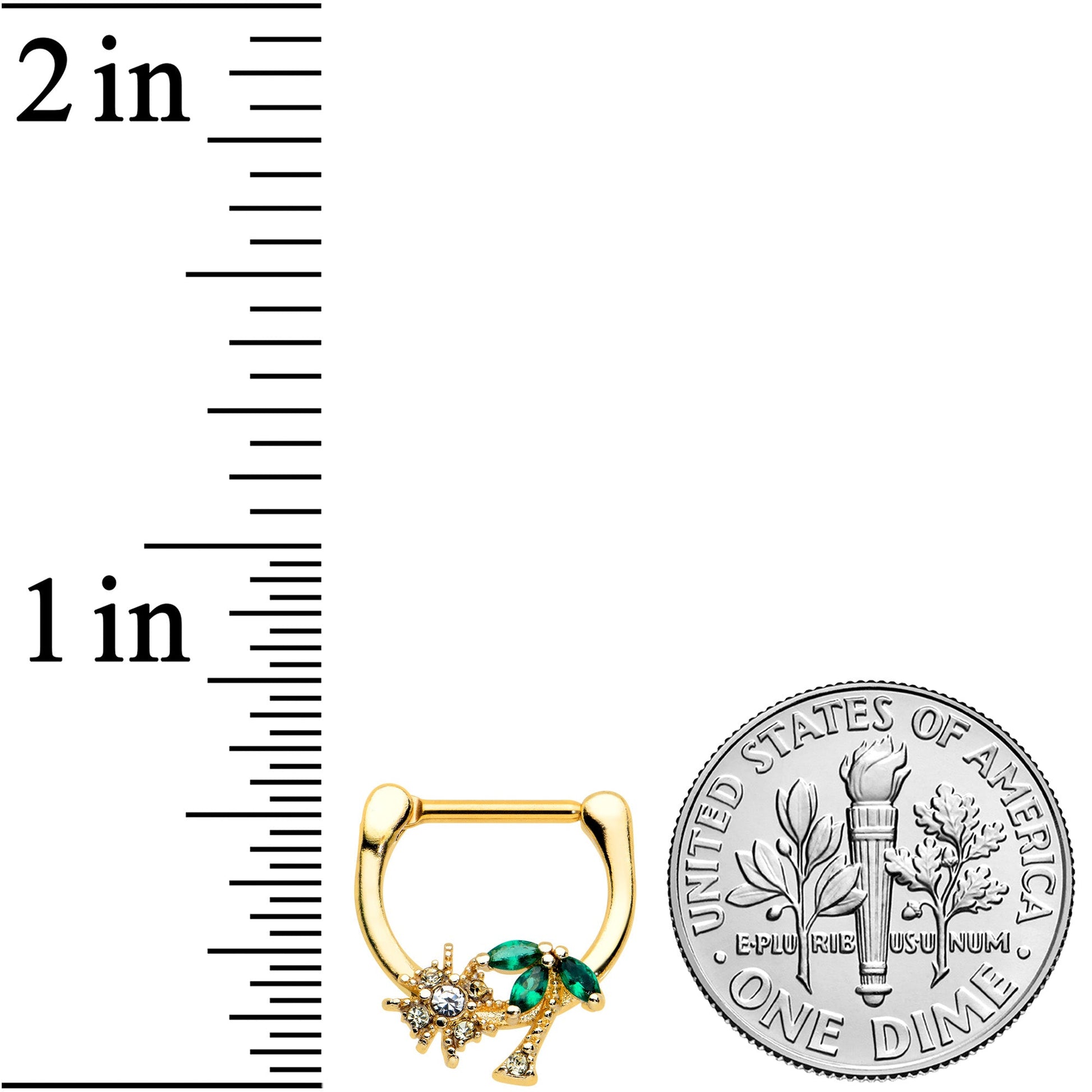 16 Gauge 5/16 Green Gem Gold Tone Sun Palm Tree Cartilage Clicker Ring