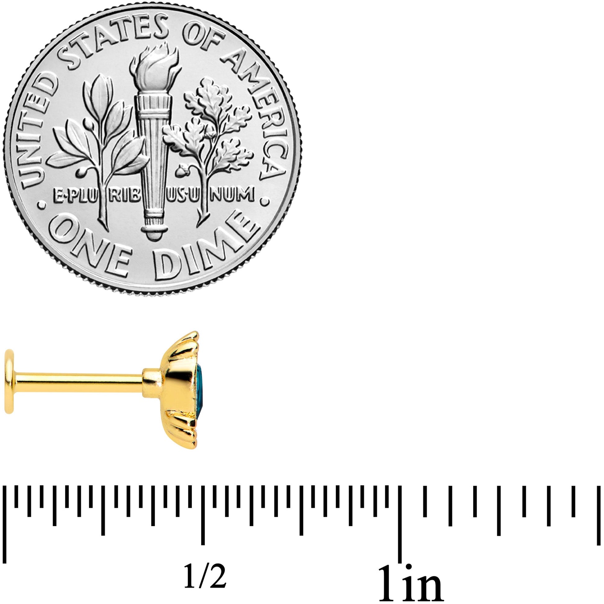 16 Gauge 5/16 Green Gem Gold Tone Teardrop Labret Monroe Tragus