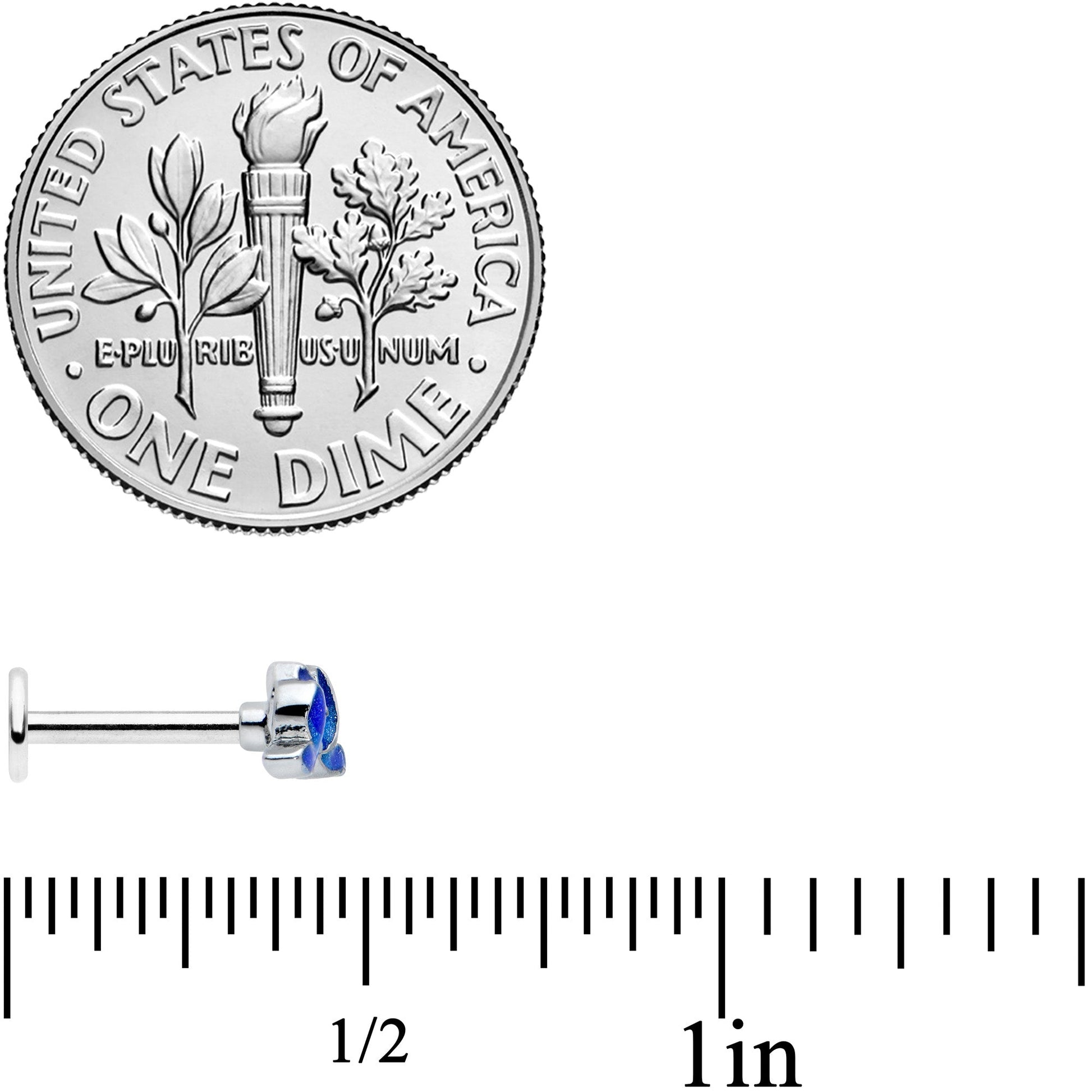 With an open mind and heart, you can't help but love this 16 gauge lip ring! It's made with an 8mm durable 316L surgical grade stainless steel straight barbell with a flat disc end. It features a lotus flower charm, lush and fully in bloom. It's inlaid in shades of deep blue with individually embellished petals. You can even rock it in multiple piercings including tragus, helix, and some conch piercings. Show off your spiritual side in deep, rich color with this lovely lotus cartilage jewelry!Specifications