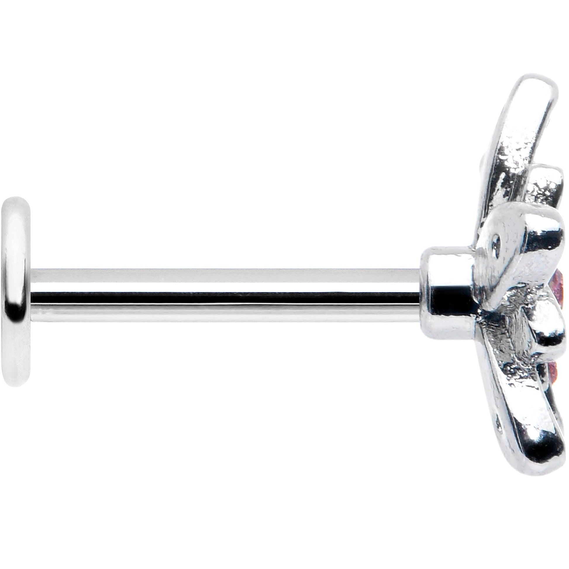 16 Gauge 5/16 Pink Clear CZ Gem Snowflake Flower Labret Monroe Tragus