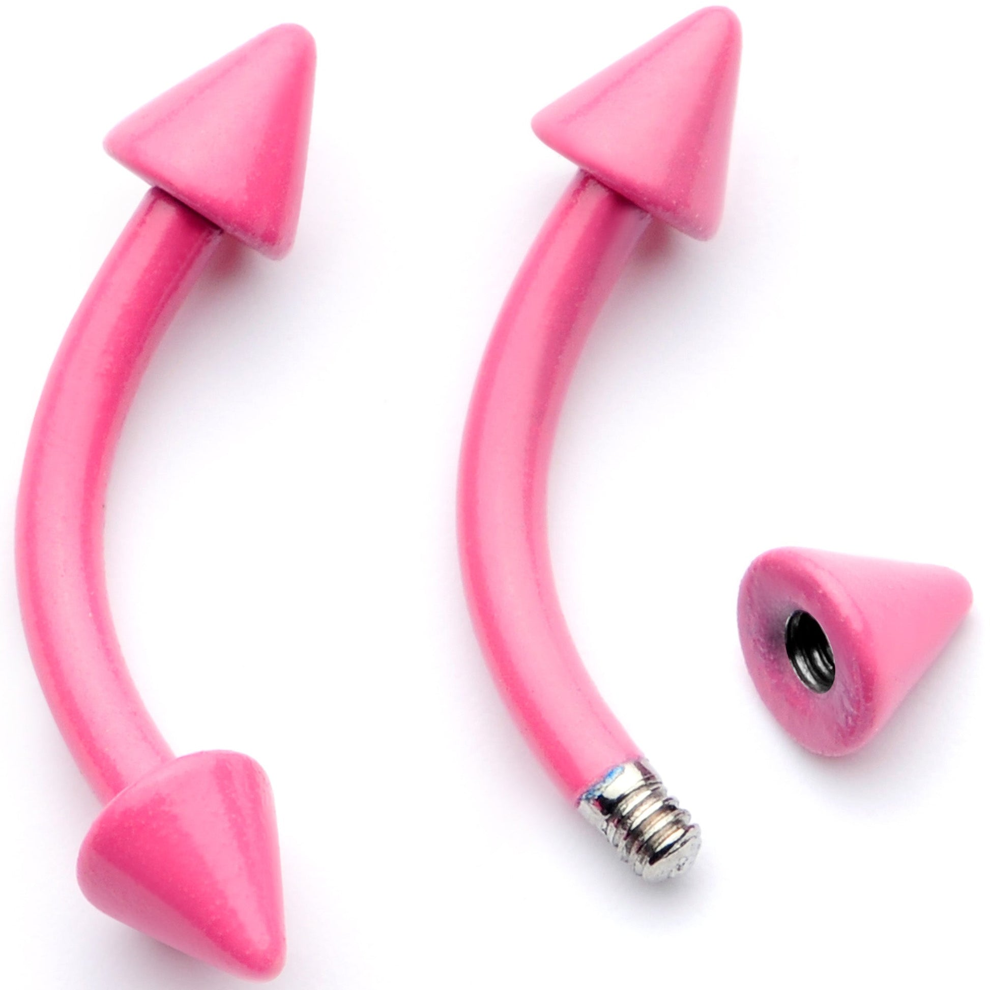 16G 5/16 Pink Glow in the Dark Cone End Curved Barbell Set of 2