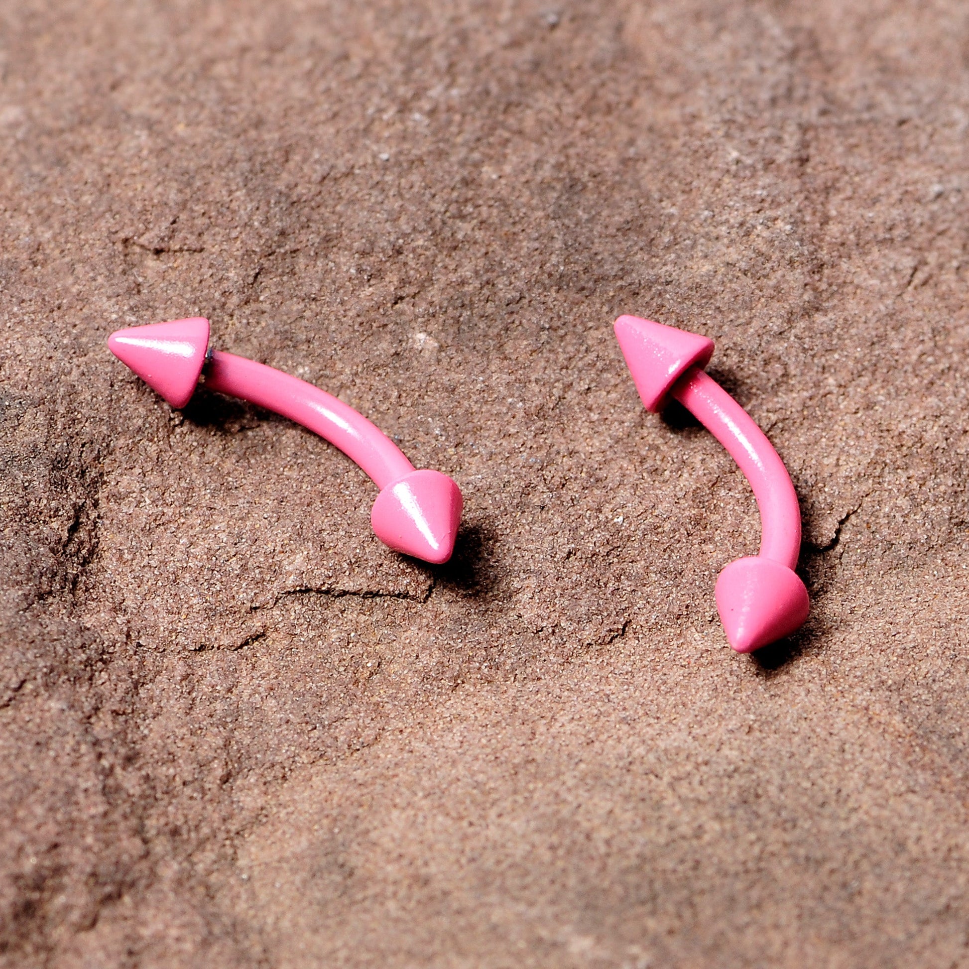 16 Gauge 5/16 Pink Glow in the Dark Cone End Curved Barbell Set of 2