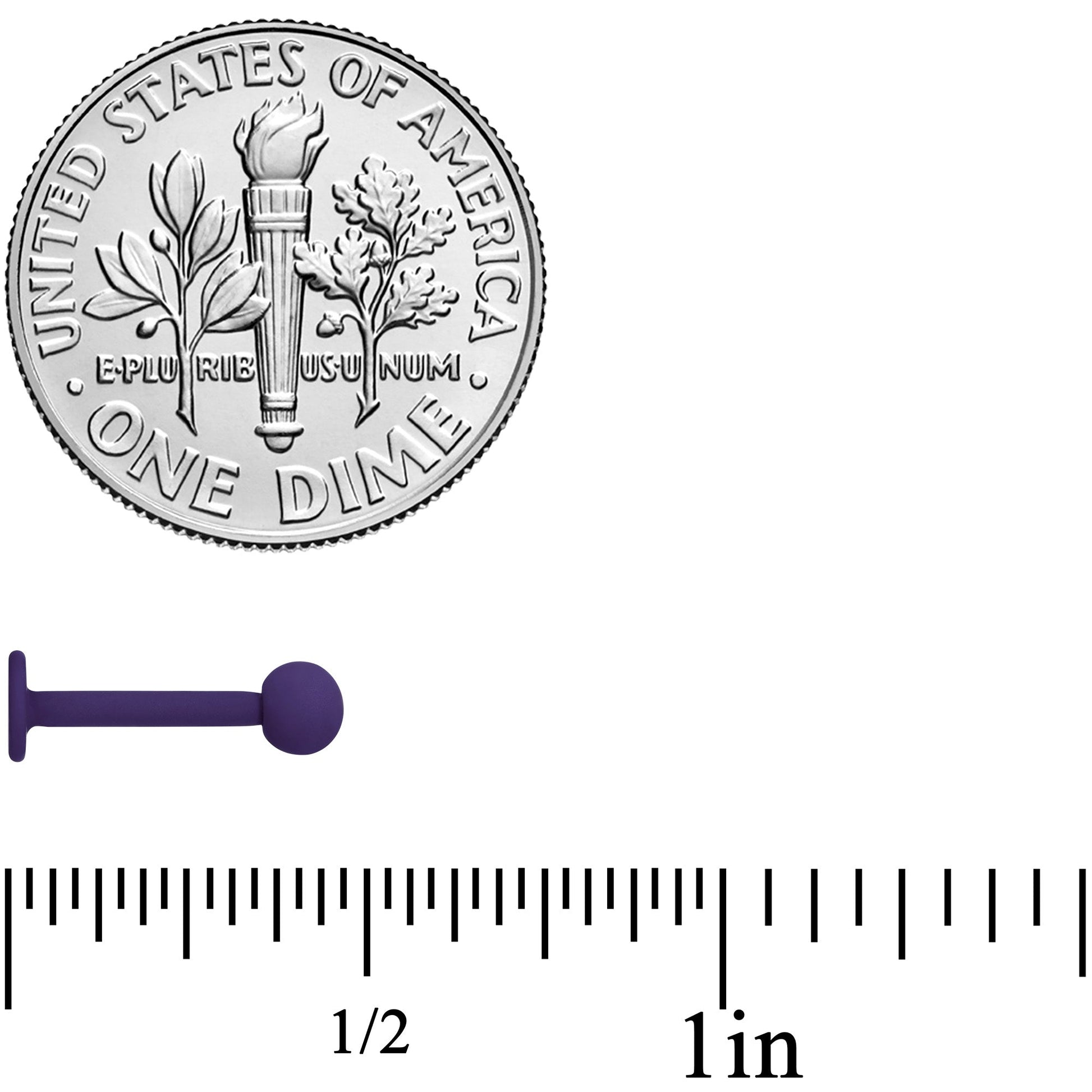 Give your cartilage piercing a touch of color with an understated effect with this 16 gauge lip ring! It's made with an 8mm purple matte plated over 316L surgical grade stainless steel straight barbell with a flat disc end. The other end features a matching 4mm purple matte acrylic ball end. And you can rock this beauty in multiple piercings including your lip and monroe as well as cartilage piercings like the helix, tragus, and some conch piercings! If you want a look that won't get lost in the crowd or overwhelm your style, this elegant purple cartilage jewelry is exactly what you're after!Specifications