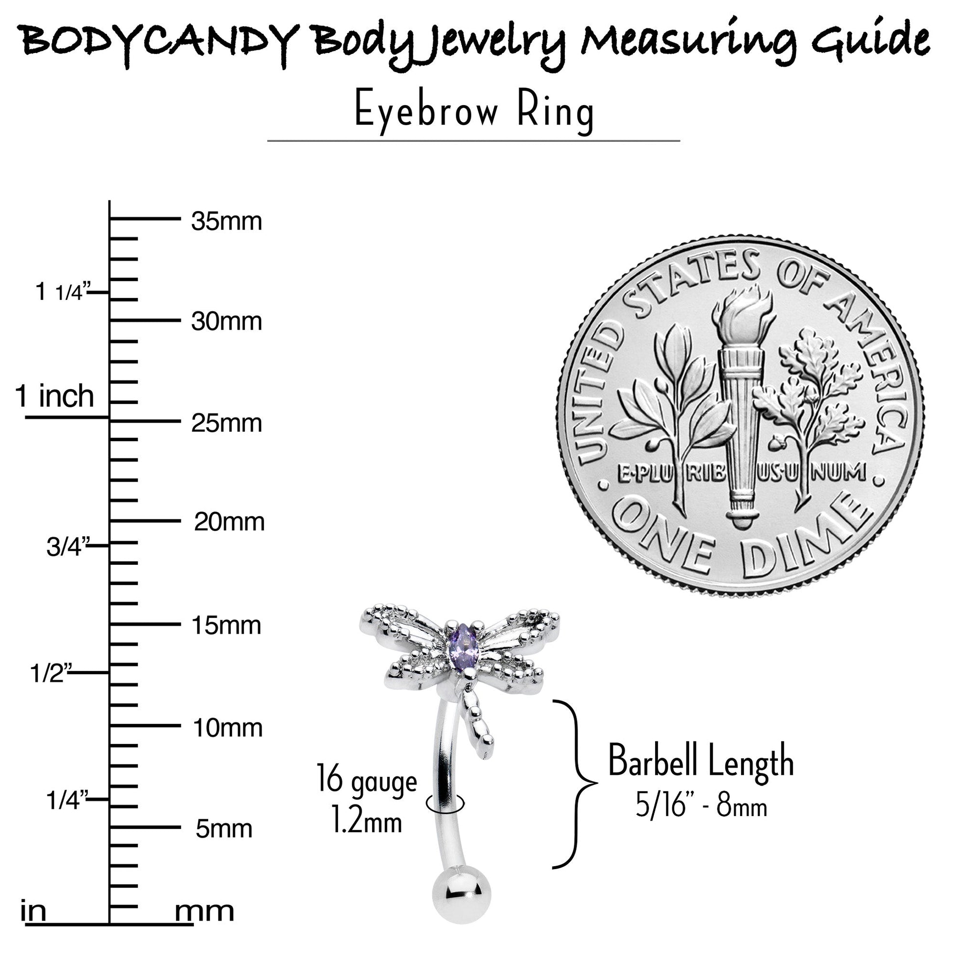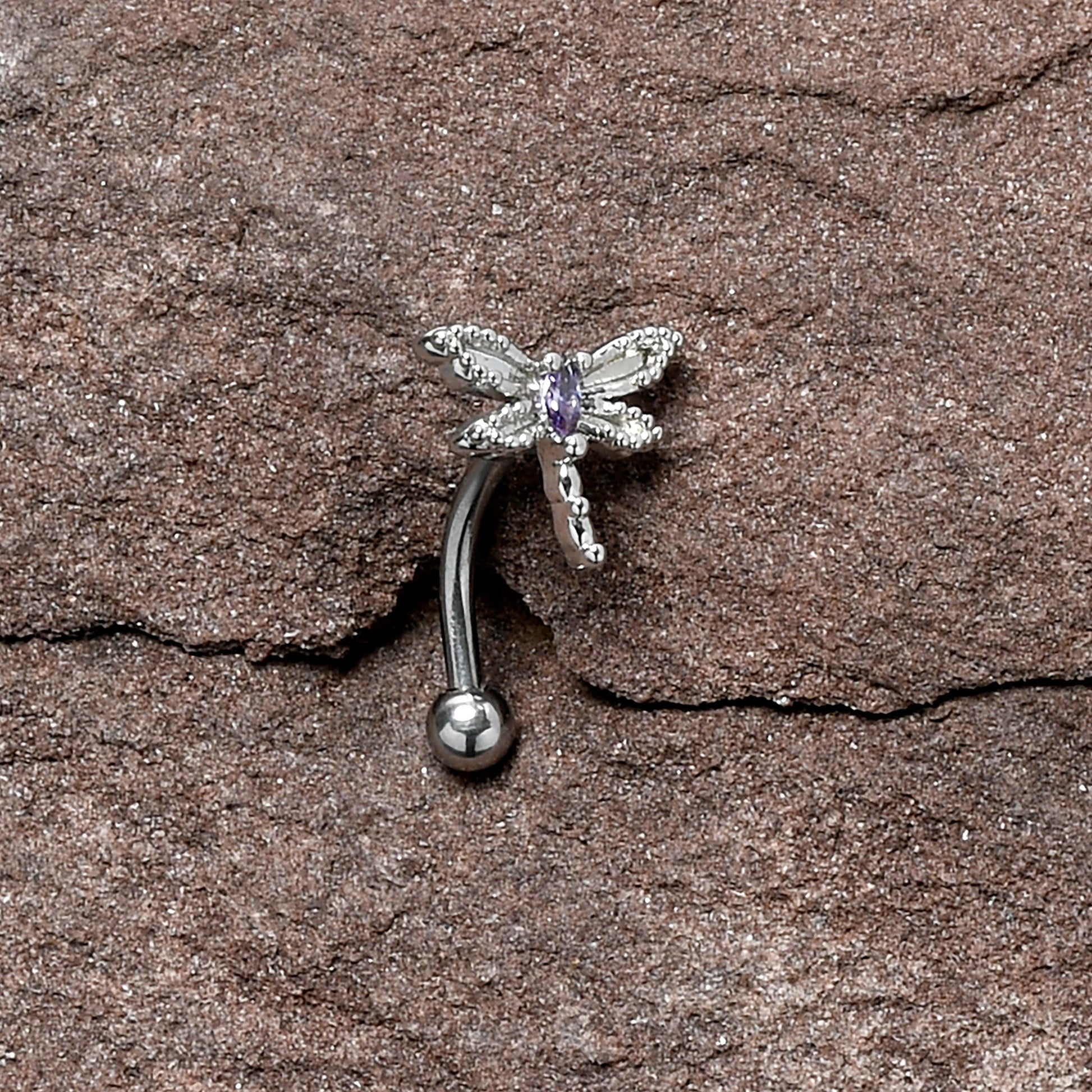16G 5/16 Purple CZ Gem Open Dragonfly Curved Eyebrow Ring