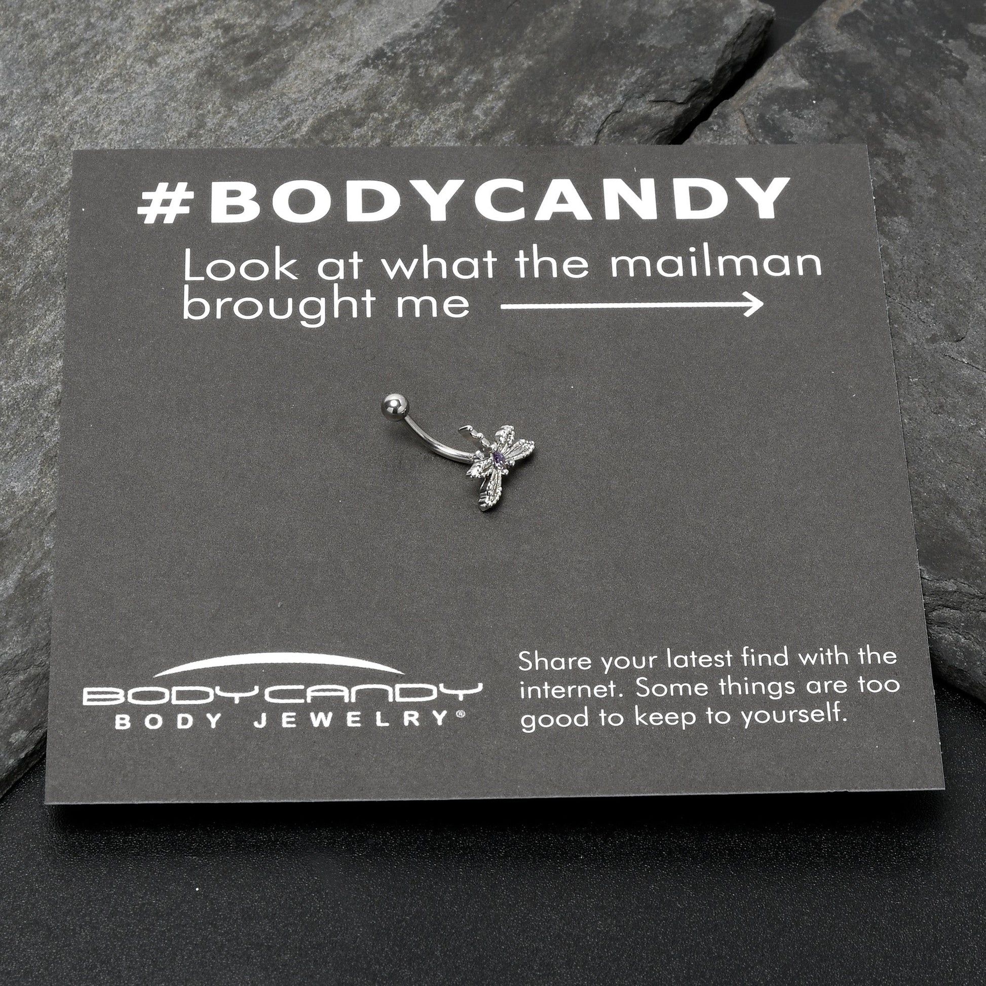 16 Gauge 5/16 Purple CZ Gem Open Dragonfly Curved Eyebrow Ring