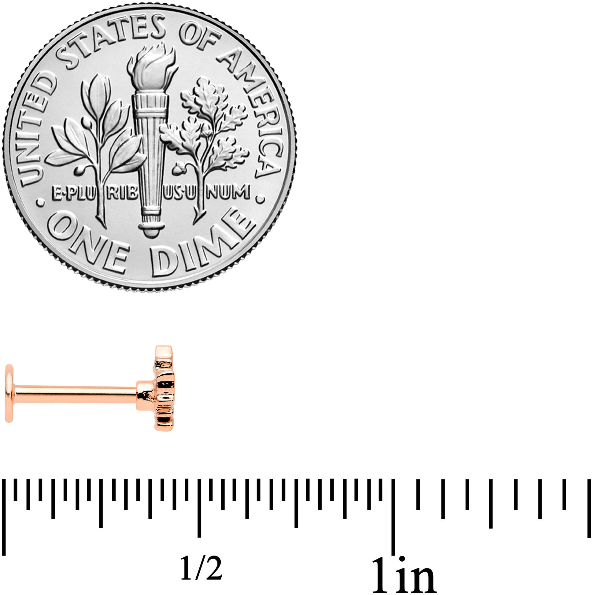 The leaves are changing color....time to celebrate Autumn with this 16 gauge lip ring! It's made with an 8mm rose gold tone electroplated over 316L surgical grade stainless steel straight barbell with a flat disc end. It features a maple leaf charm, inlaid in white - perfect for the oncoming days of Winter! You can even wear it in multiple piercings including lip, monroe, tragus, helix, and some conch piercings! Let the seasons change your look for the better with this elegantly understated maple leaf cartilage jewelry!Specifications