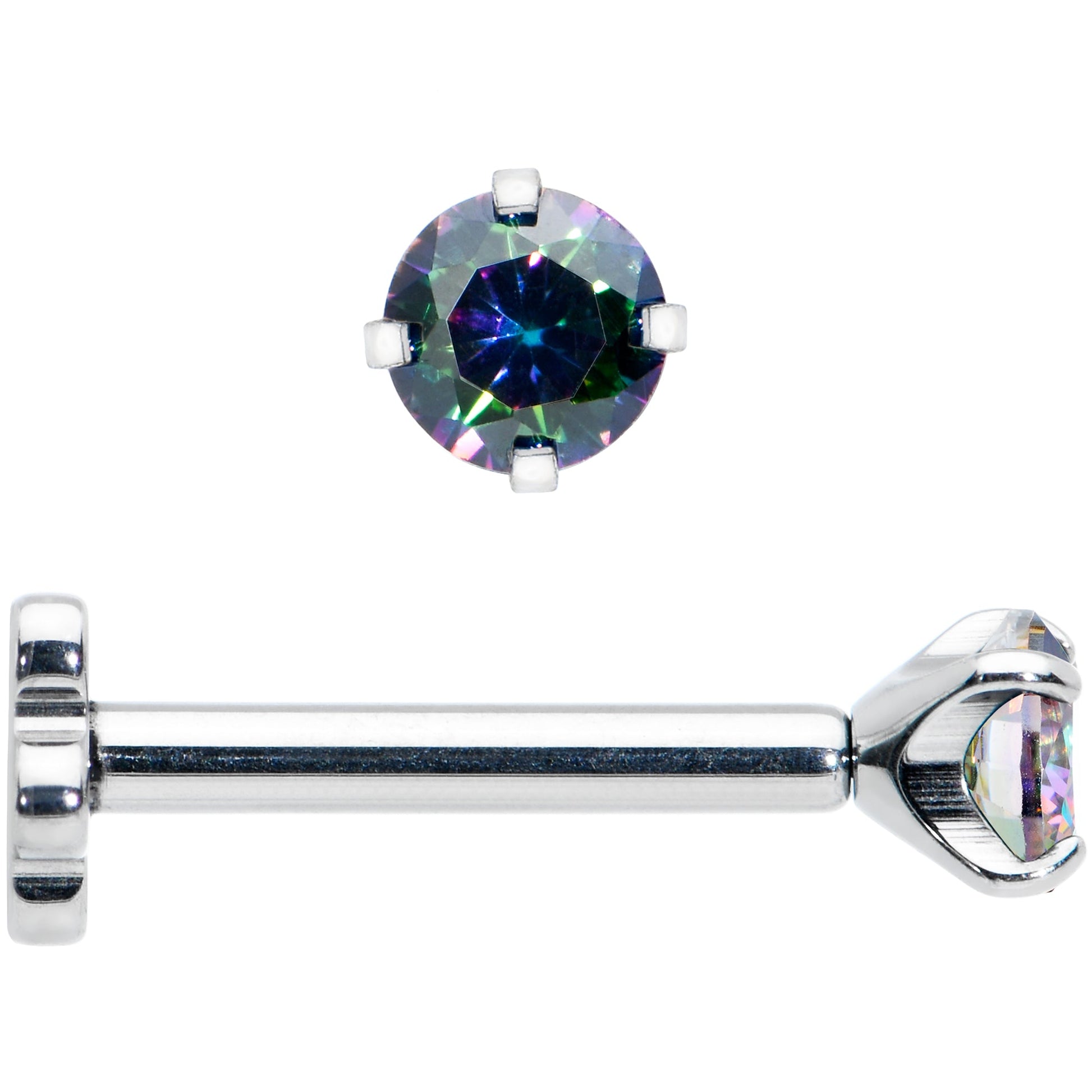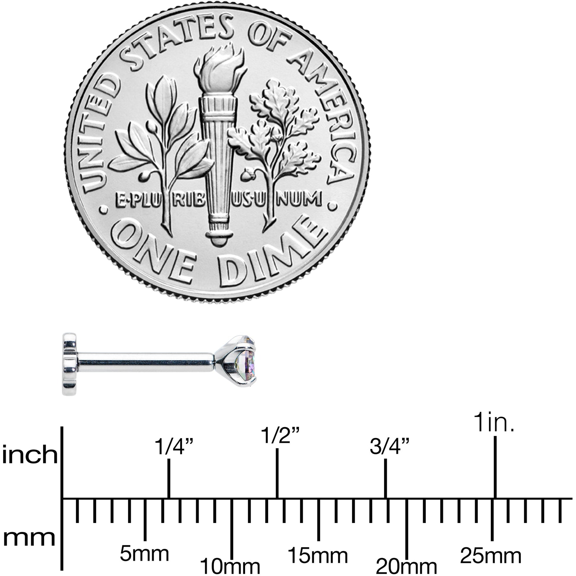 Your cartilage piercings will have twice the style with this 16 gauge lip ring! It's made with an 8mm solid grade 23 implant grade titanium straight barbell. The front end features a 3mm vitrail gem in a pronged setting and a threadless design that makes insertion and removal a snap! The back end features a flower shape, for a charming change from the standard disc shape. You can even rock this jewelry in multiple piercings including lip, monroe, tragus, helix, and some conch piercings. With such an endearing style and such thoughtful details, this is one cartilage ring you'll never want to remove!Specifications