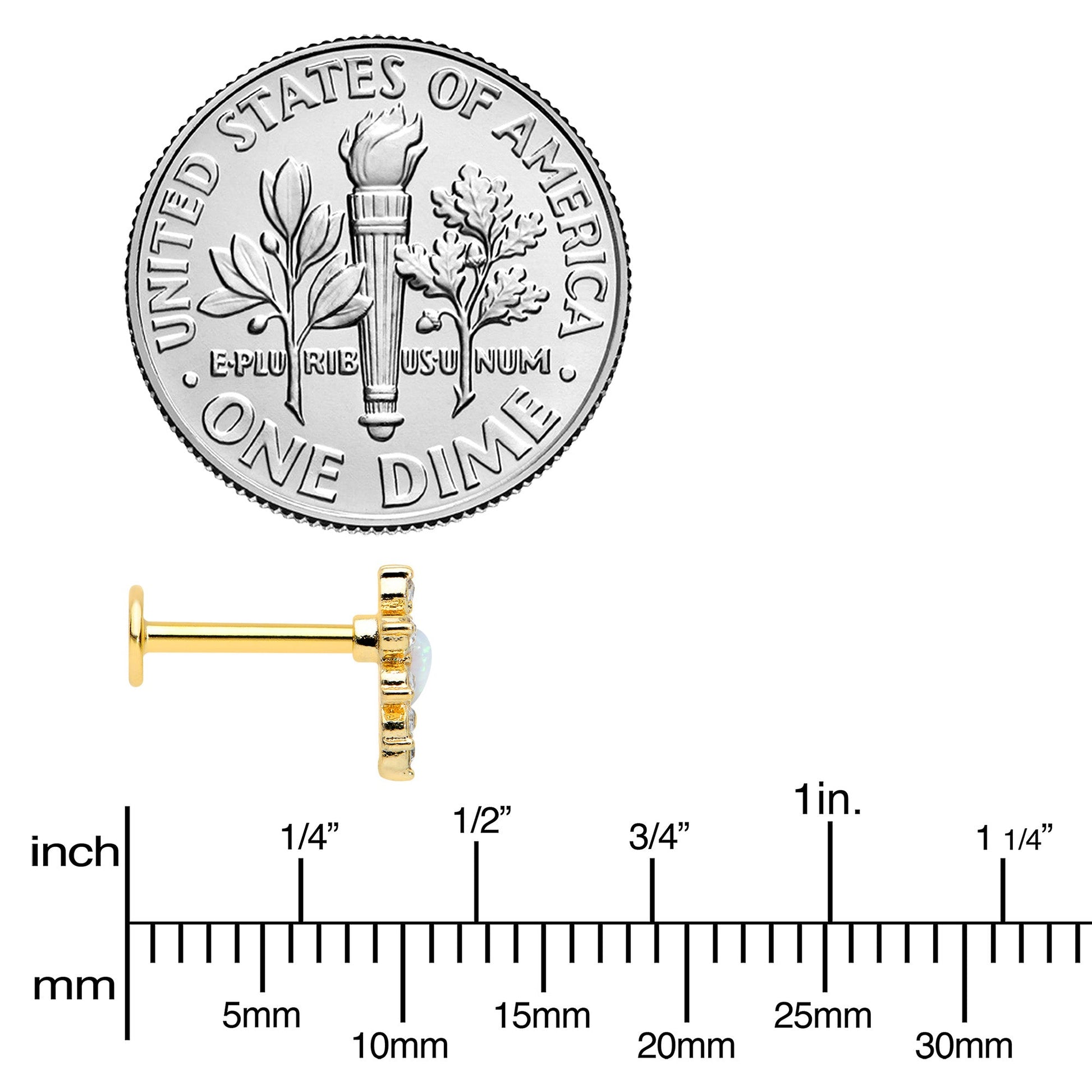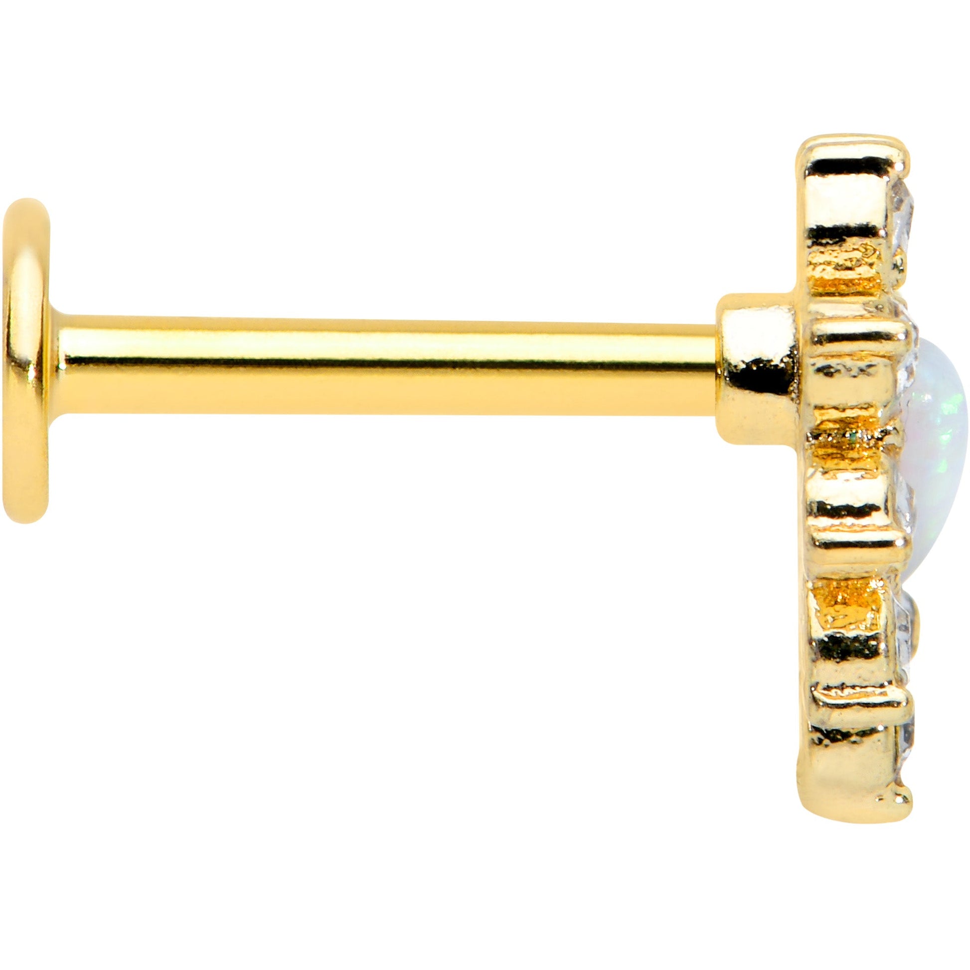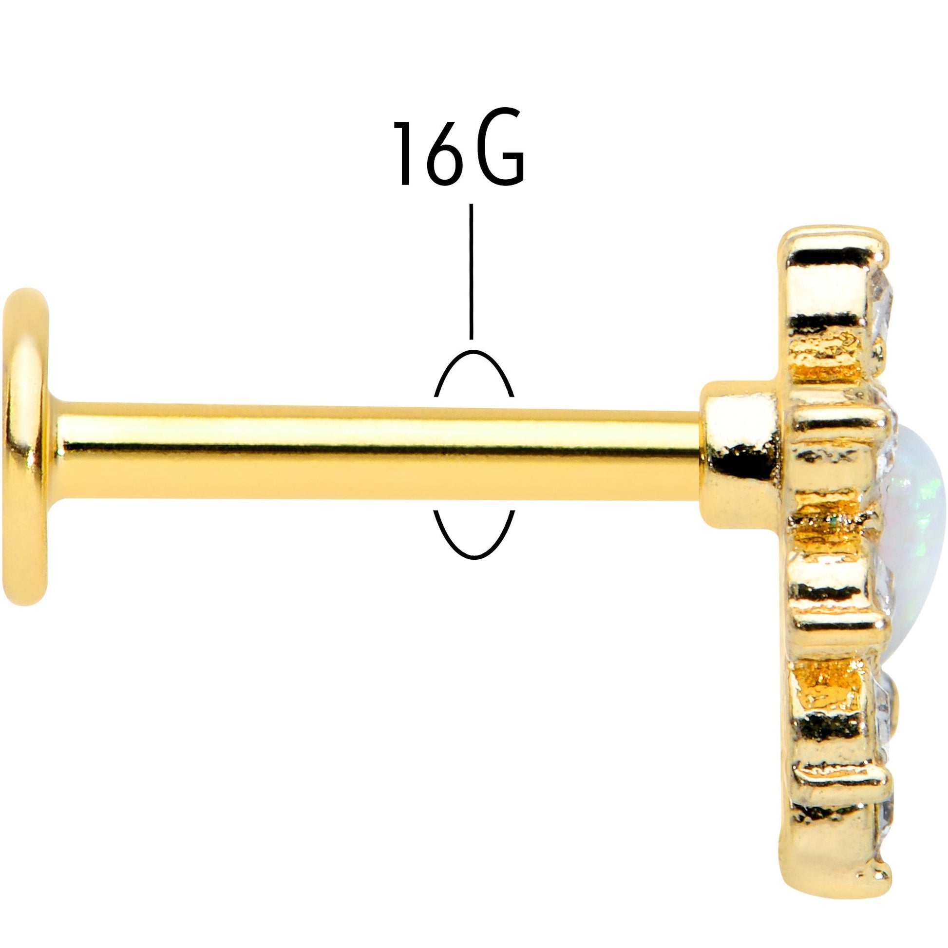 16 Gauge 5/16 White Faux Opal Gold Tone Sun Heart Labret Monroe Tragus