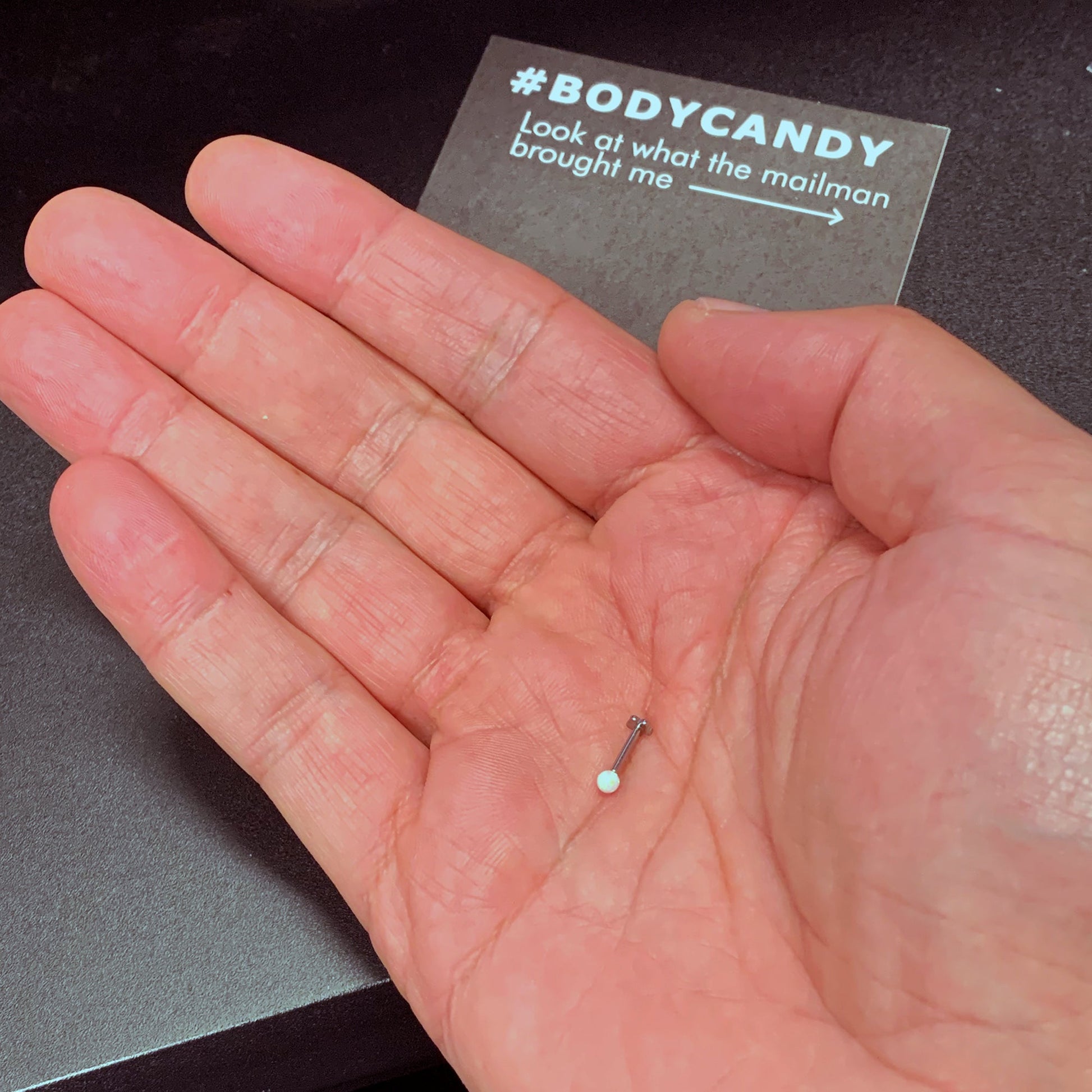 16 Gauge (1.2mm), 5/16" (8mm), Solid Grade 23 Implant Grade Titanium Straight Barbell, Synthetic Opal, 3mm Threadless End
