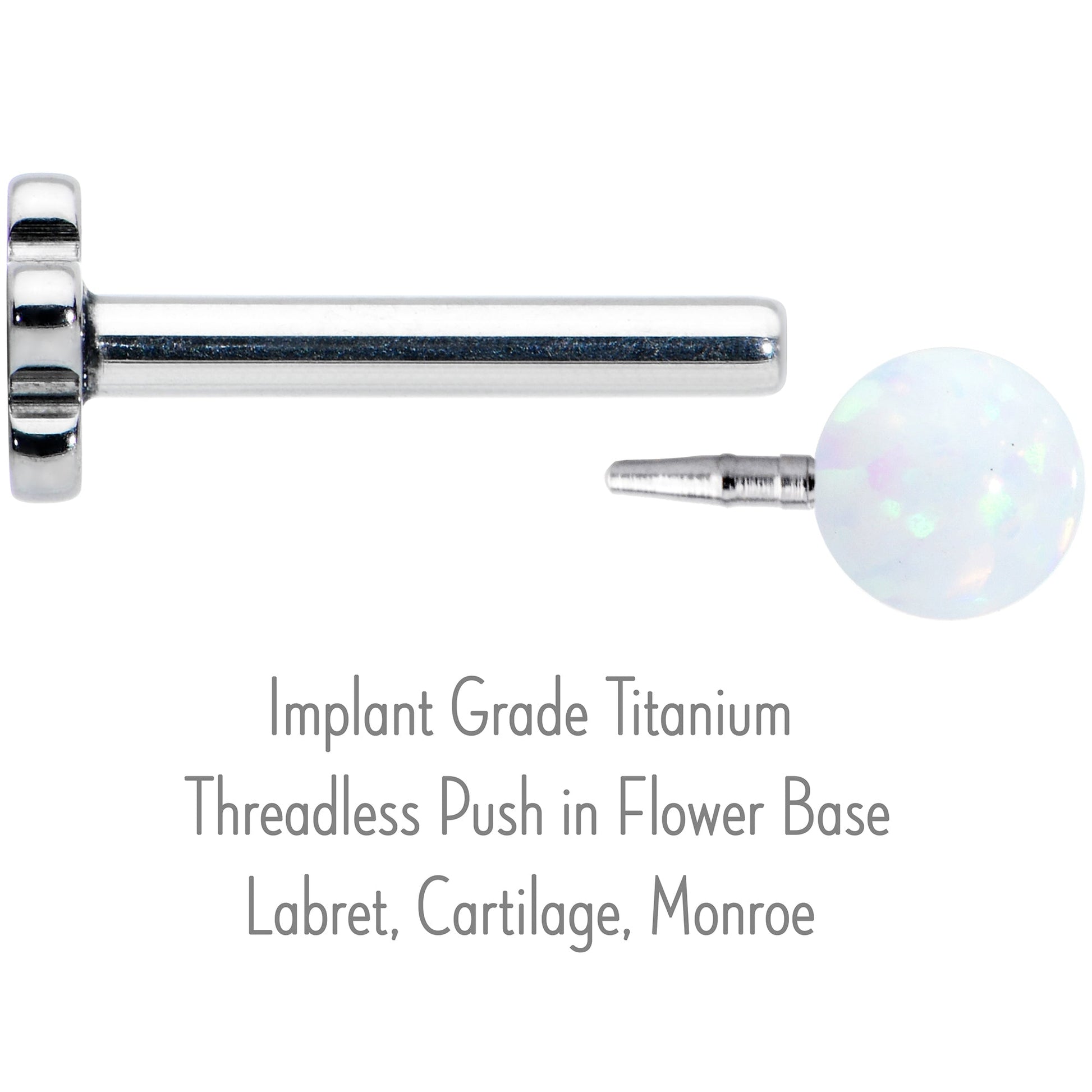 16G 5/16 White Synthetic Opal Titanium Threadless Flower Labret