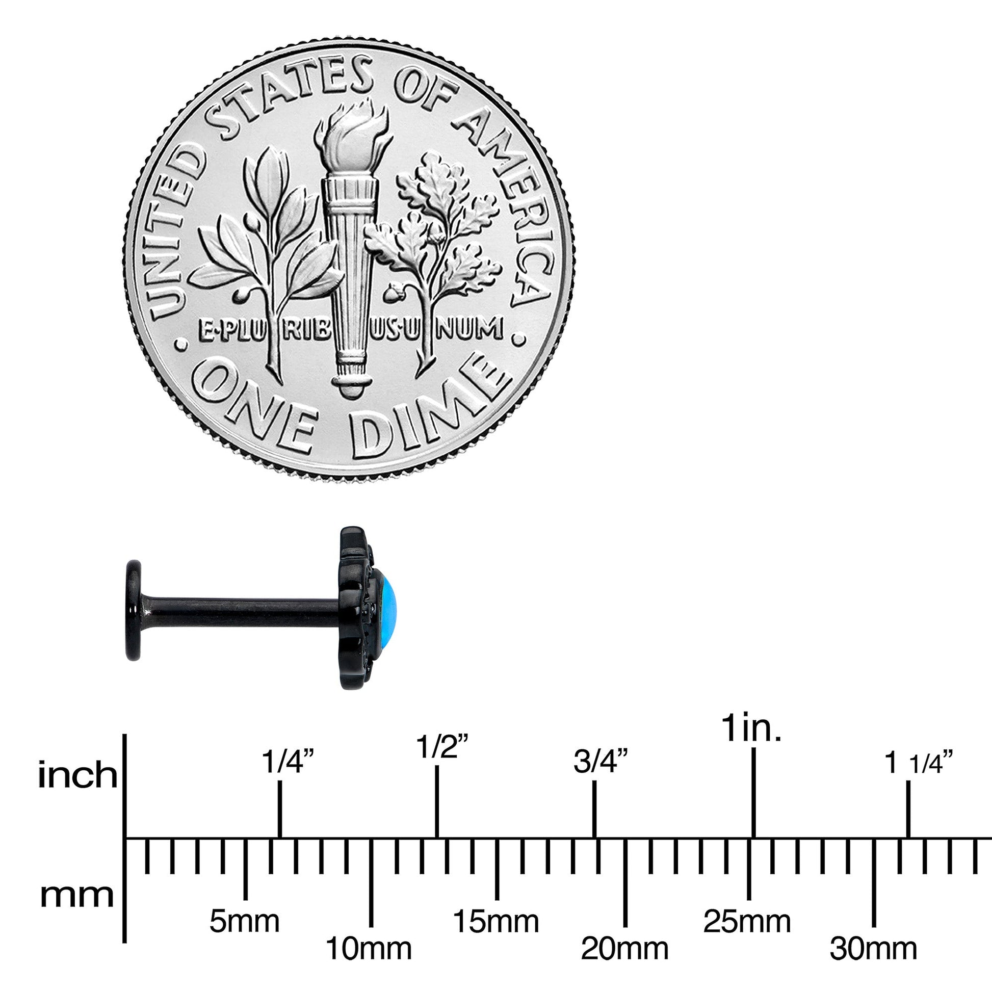 16G 5/16 White Tourmaline Black Filigree Labret Monroe Tragus