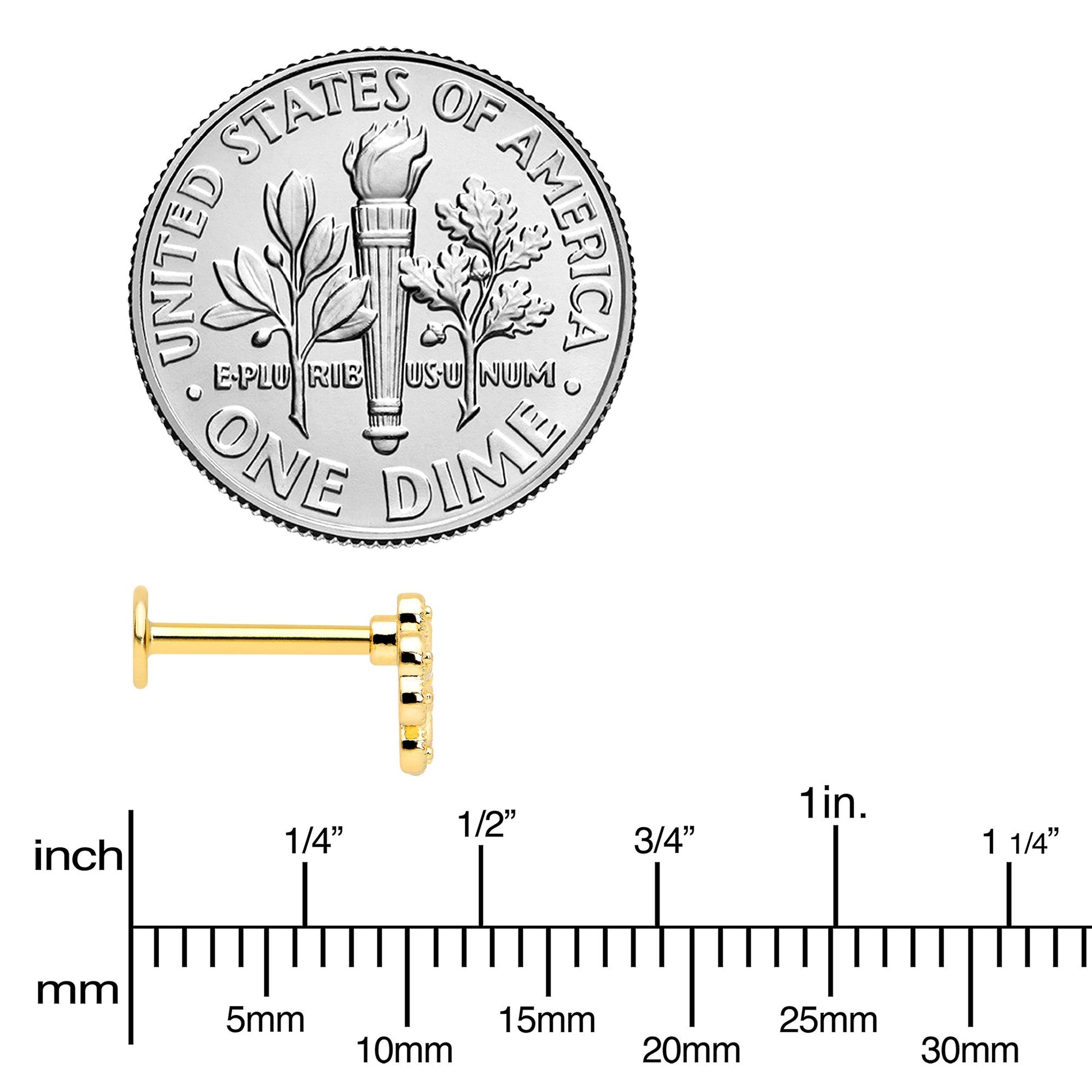 Give your piercings a spiritual flair with this 16 gauge cross-themed lip ring. It's made with an 8mm gold tone PVD over 316L surgical grade stainless steel straight post with a flat disc end. It features a cross charm, with flared ends and textured detailing. The cross is set at the center with a yellow gem for an added touch of subtle style. You can even bear this cross in multiple piercings including lip, monroe, tragus, helix, and some conch piercings. Let your spiritual side shine with this elegant cartilage piercing jewelry!Specifications