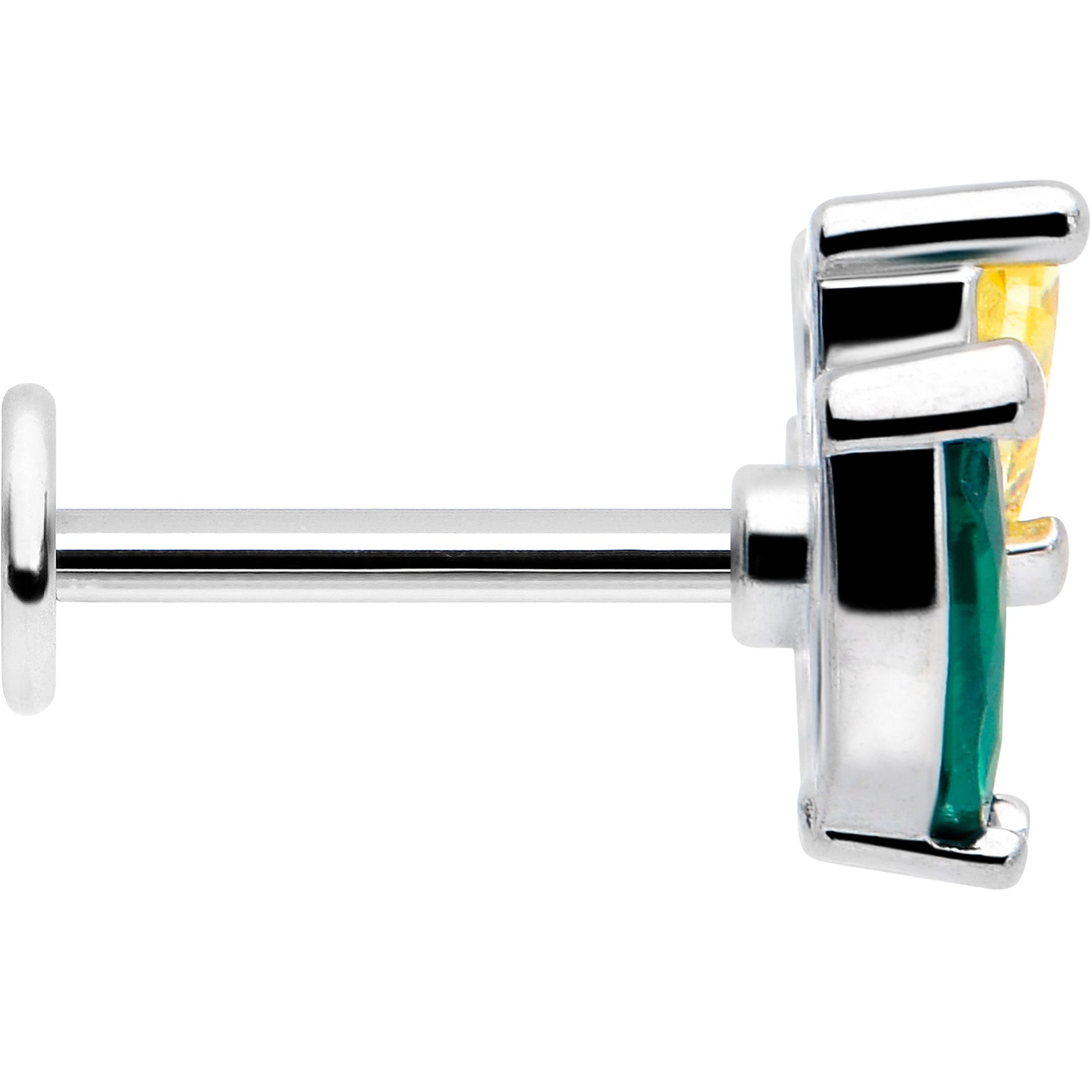 16G 5/16 Yellow Green CZ Gem Love Flower Labret Monroe Tragus