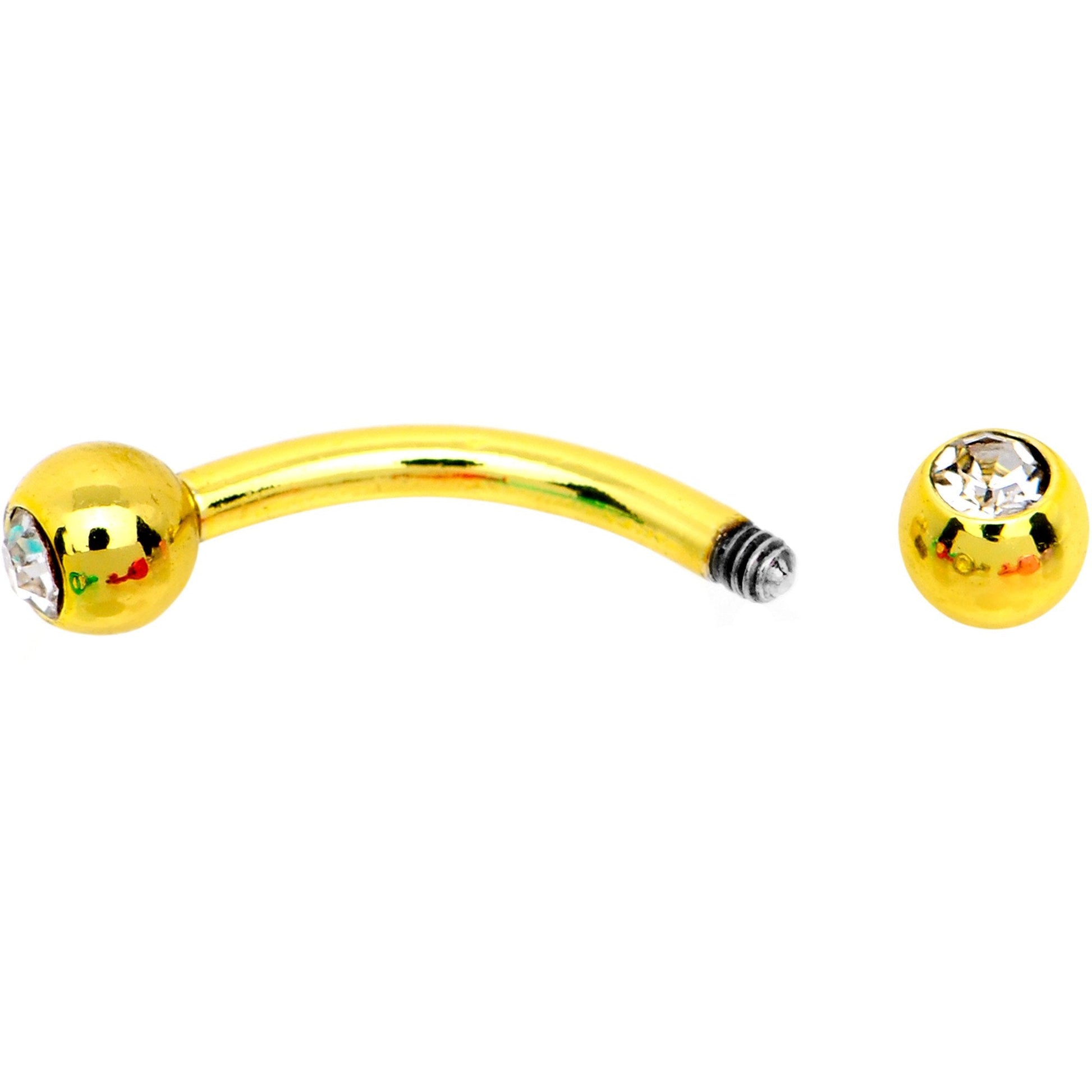 All eyebrow piercings have a 316L surgical grade stainless steel curved barbell with a clear cubic zirconia gem ball and end.