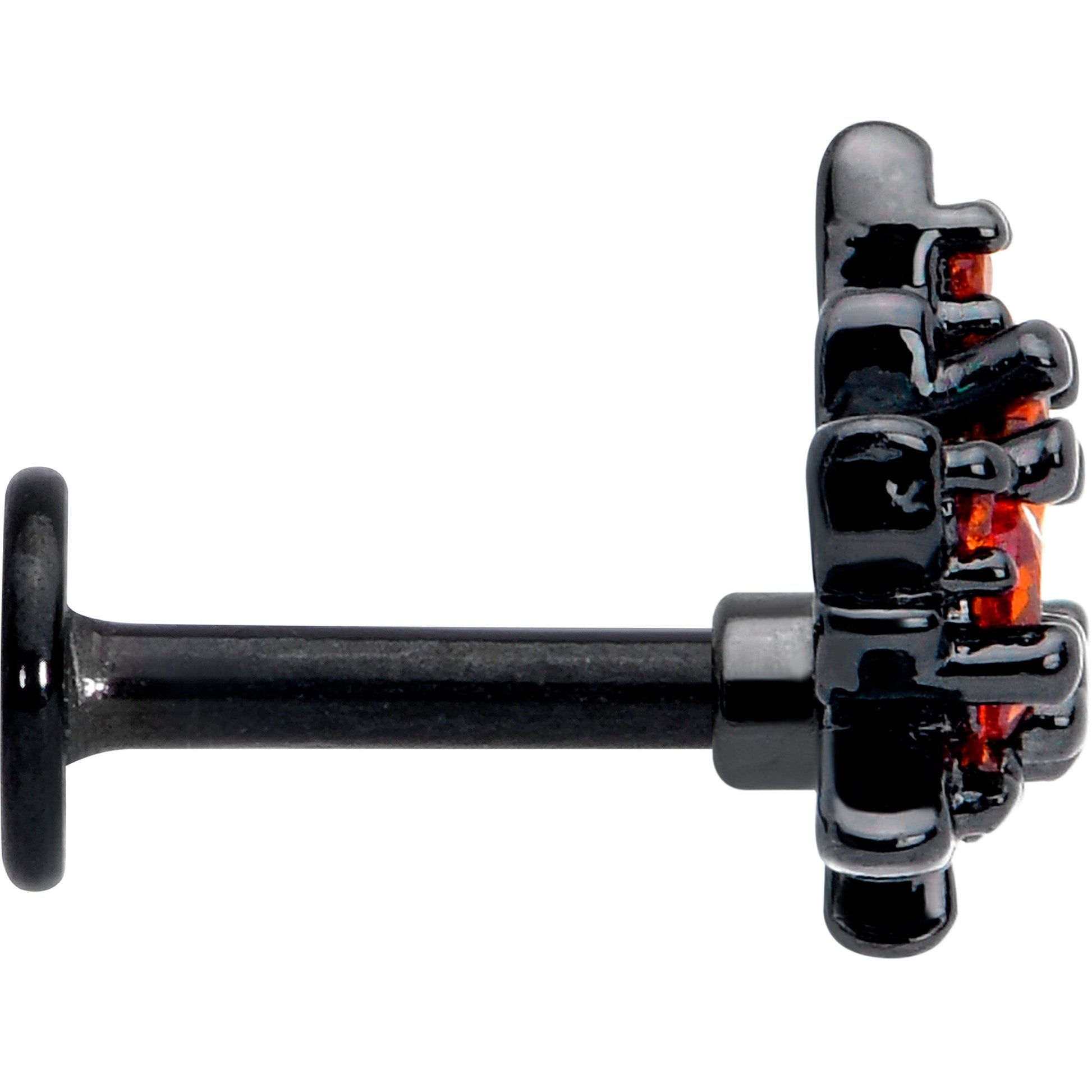 Check out this super comfortable 16 gauge flat back earring for 24/7 wear.. No need to take this earring out; keep it in for sleeping and naps. It's made with a 6mm black PVD over 316L surgical grade stainless steel straight post with a flat disc end. The front end features a maple leaf charm, set with orange cubic zirconia gems. It further features understated detailing. You will be all dolled up for autumn with this classic and colorful ear piercing jewelry.Specifications