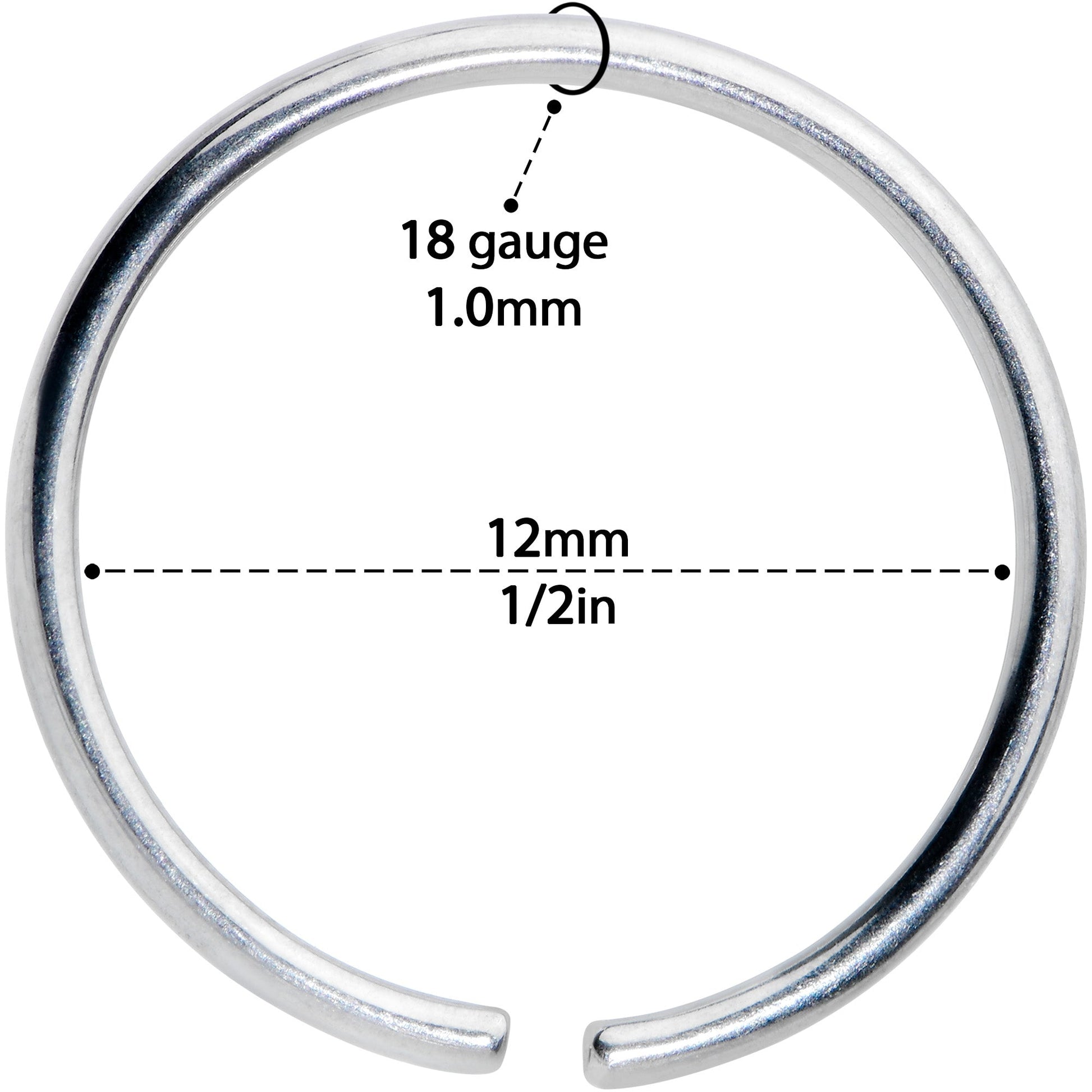 Sometimes we all need closure....sometimes we just need some awesome jewelry like this 18 gauge cartilage ring! It's made with a 12mm solid grade 23 implant grade titanium circular ring. It features durable materials as well as simple style that never goes out of fashion. It also features rounded ends to make insertion and removal super comfortable. This hoop ring is super easy to insert and remove - simply twist the ring open, insert, and then twist gently shut again. You can also wear this in small gauge piercings such as earlobe, and some conch piercings ! Put some quality elegance in your piercing with this understated cartilage piercing ring!Specifications