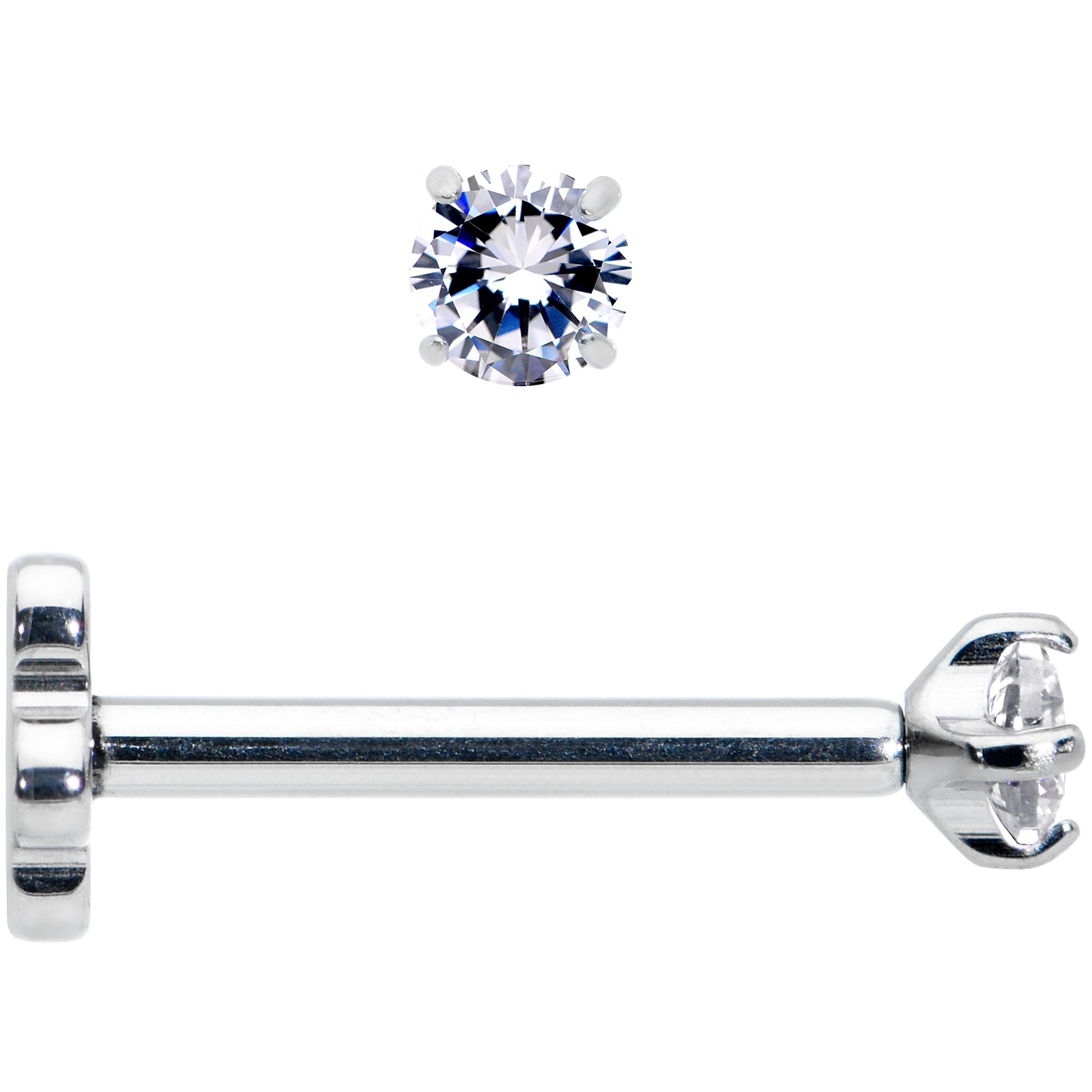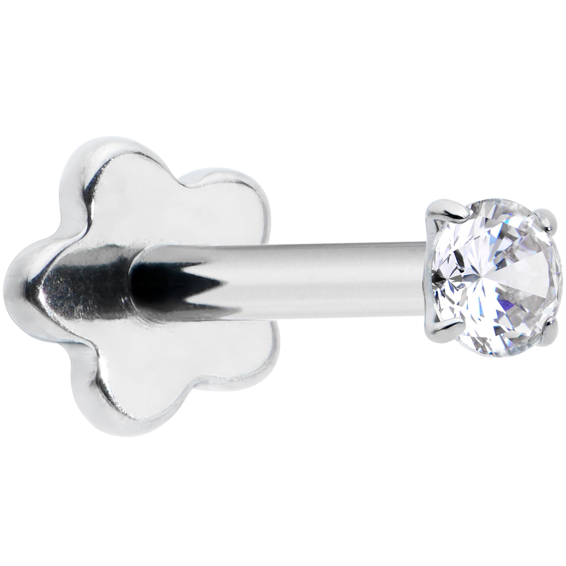 Hypoallergenic jewelry for sensitive skin18 Gauge 5/16 Clear CZ G23 Titanium Threadless Flower Labret Tragus
