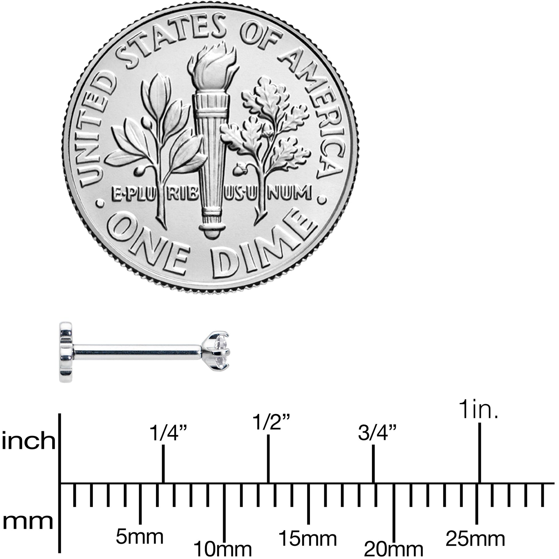 Your cartilage piercings will have twice the style with this 16 gauge lip ring! It's made with an 8mm solid grade 23 implant grade titanium straight barbell. The front end features a clear gem in a pronged setting and a threadless design that makes insertion and removal a snap! The back end features a flower shape, for a charming change from the standard disc shape. You can even rock this jewelry in multiple piercings including nostril, earlobe, tragus and some conch piercings. With such an endearing style and such thoughtful details, this is one cartilage ring you'll never want to remove!Specifications