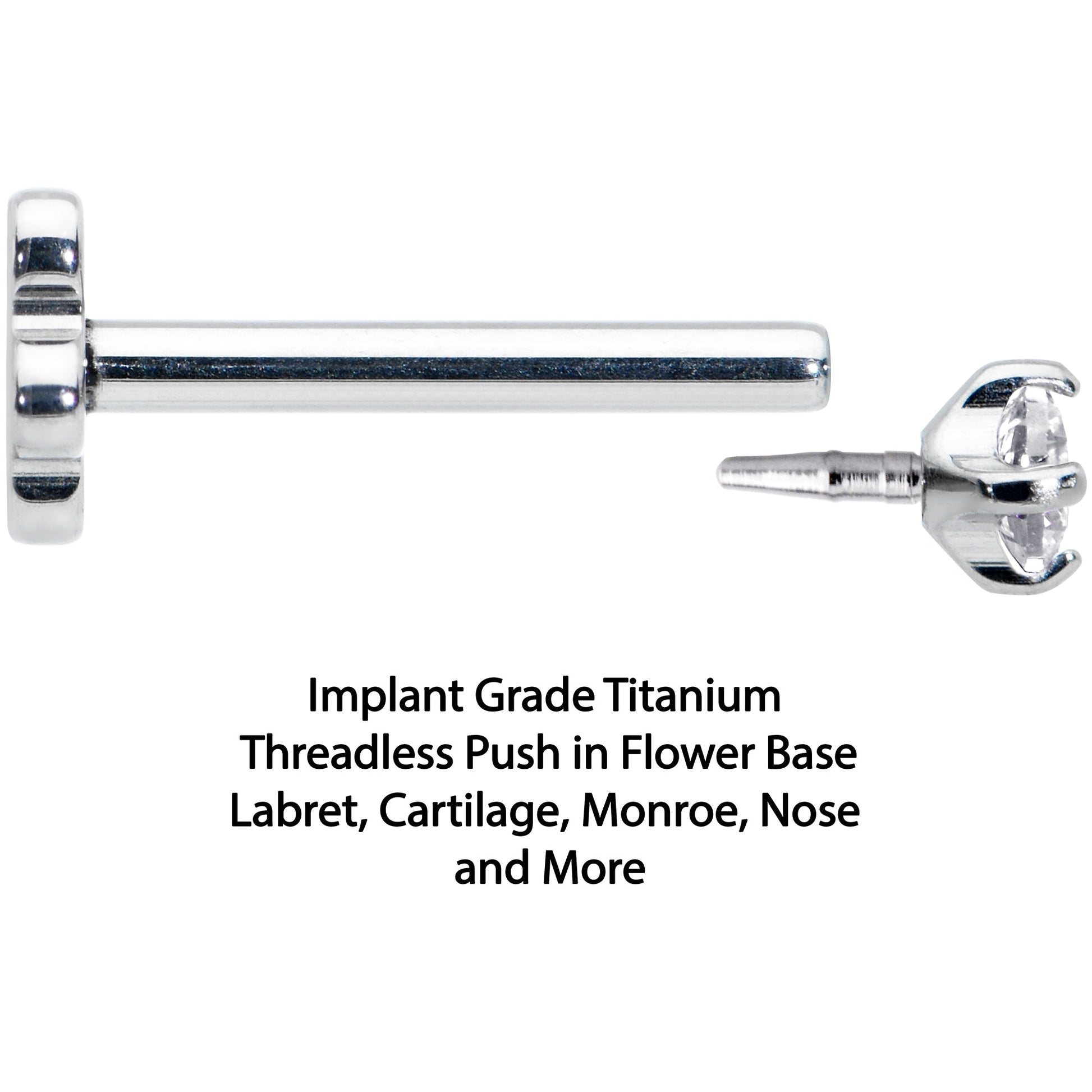 18G 5/16 Clear CZ G23 Titanium Threadless Flower Labret Tragus