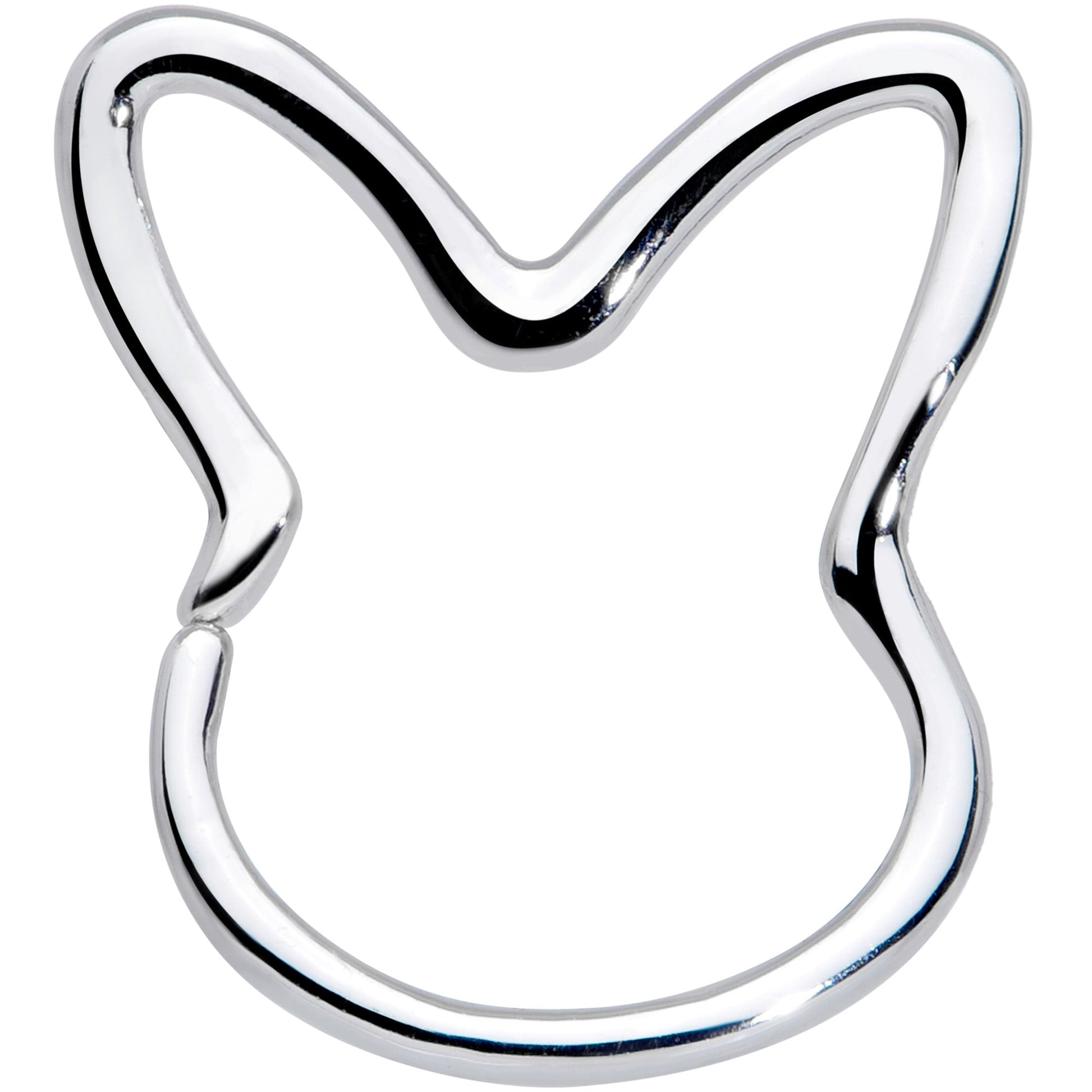 This little bunny wants to hippity-hop into your piercings with this 18 gauge cartilage jewelry! It's made with rhodium plated over brass, measures 8mm, and features the unmistakable shape of a bunny rabbit! This cartilage jewelry is super easy to insert and remove - simply twist the ring open, insert, and then twist gently shut again. Plus you can wear it in multiple piercings including helix, tragus, and some conch piercings! With so many options, this rabbit should have no problem finding a hole to live in!Specifications