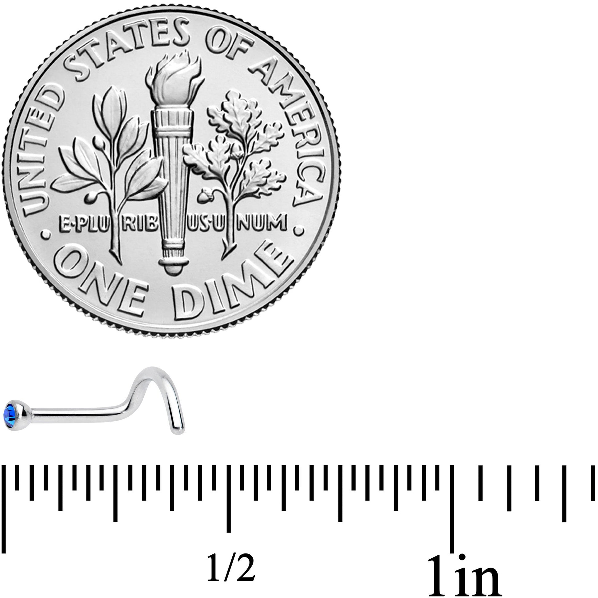 Don't let your nostril piercing get screwed up by inferior jewelry - grab one of these 18 gauge nostril rings instead! It features a 1/4" length at the bend post and is made with solid Grade 23 implant grade titanium. This subtle but stylish nose ring features a 2mm deep blue press fit gem end for a look that's fashionable but not over the top. It is designed for a left side nostril piercing and has a curving design that makes for comfortable wear and easy insertion. Comfortable, colorful, and quality - it's everything you could want for your nostril piercing in one petite package!Specifications