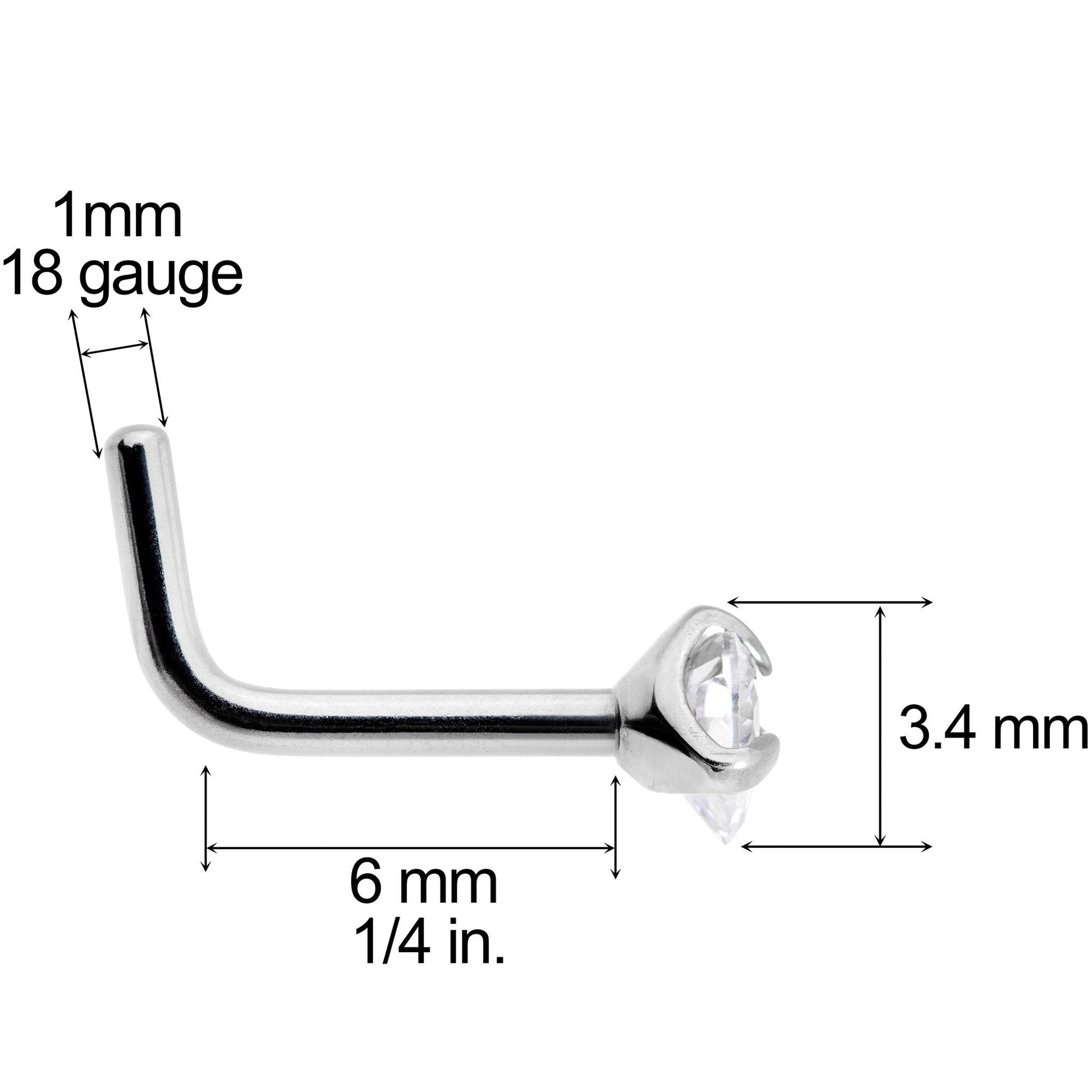 18 Gauge (1mm), 1/4" (6mm) Length at the Bend, Solid Implant Grade 23 Titanium, 3mm Cubic Zirconia