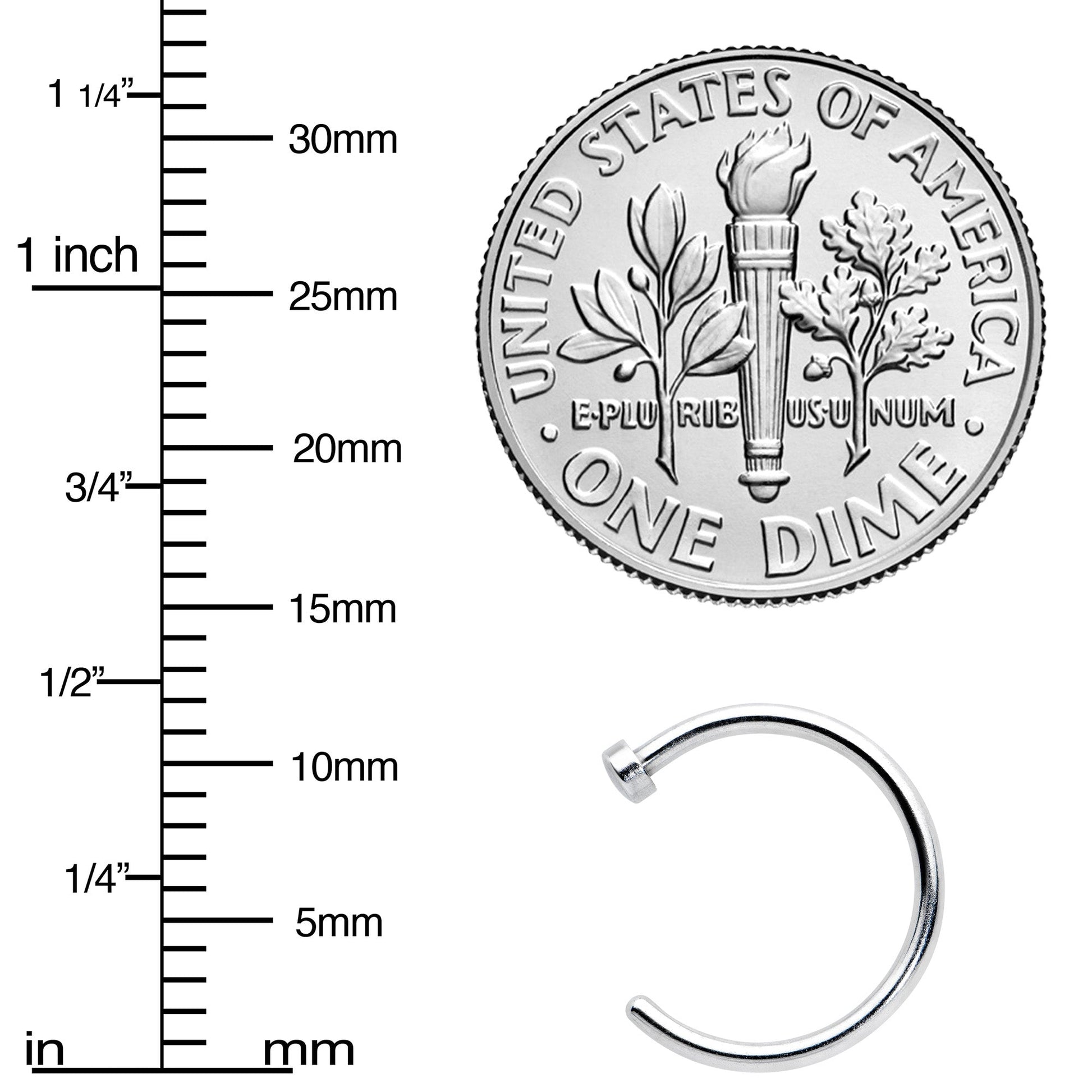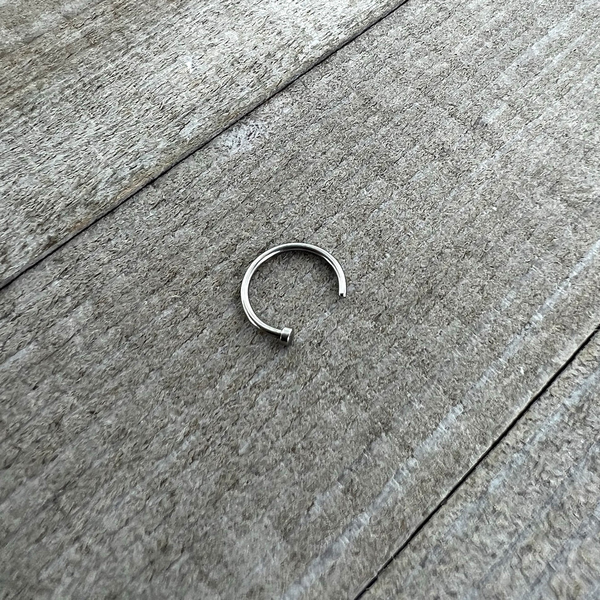 Hypoallergenic jewelry for sensitive skin18 gauge nose hoop constructed of high quality surgical grade stainless steel. Simply insert the opening of the hoop through the nostril. Twist and turn through piercing until the flat disc on the end is resting against the inner part of the nostril.