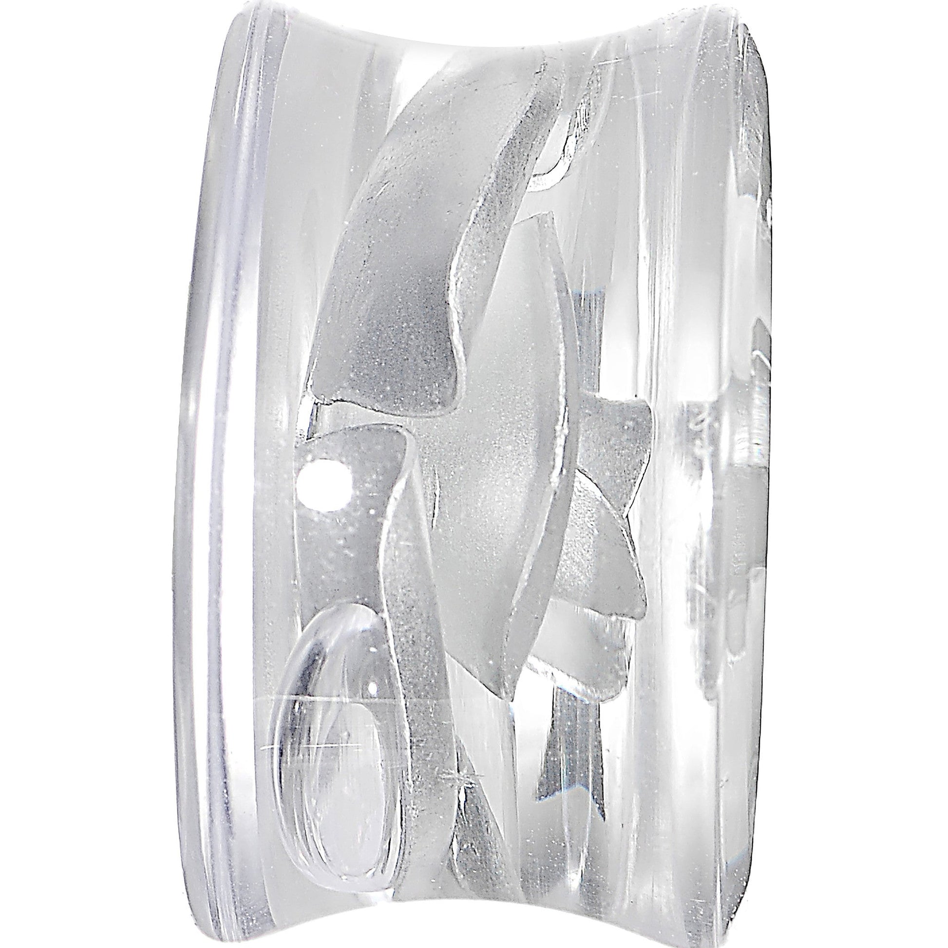 Hypoallergenic jewelry for sensitive skin.Sold Individually, purchase 2 for a pair.18mm clear acrylic plug featuring a floating silver metallic rose. Let your beauty bloom with this elegant floral ear plug.