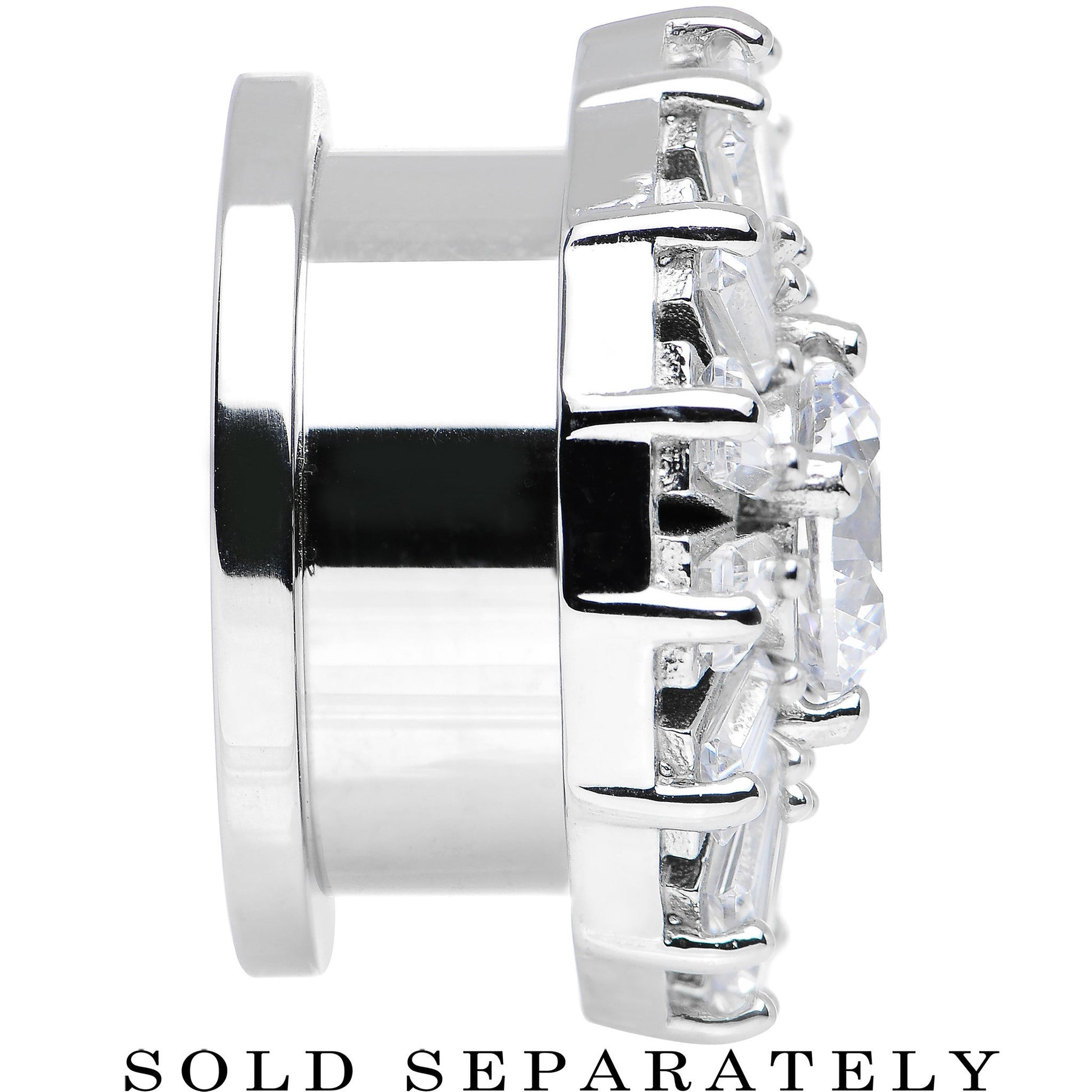 Sold individually, please purchase a quantity of 2 for a pair. Flowers found in nature were never as glamorous as this 18mm screw fit ear gauge plug. The unique ear expander features prong set clear cubic zirconias for absolute brilliance. Threaded stainless steel and CZ ear stretcher pierced Body Jewelry.Fully autoclavable and prong set wheel of gem threaded plug.