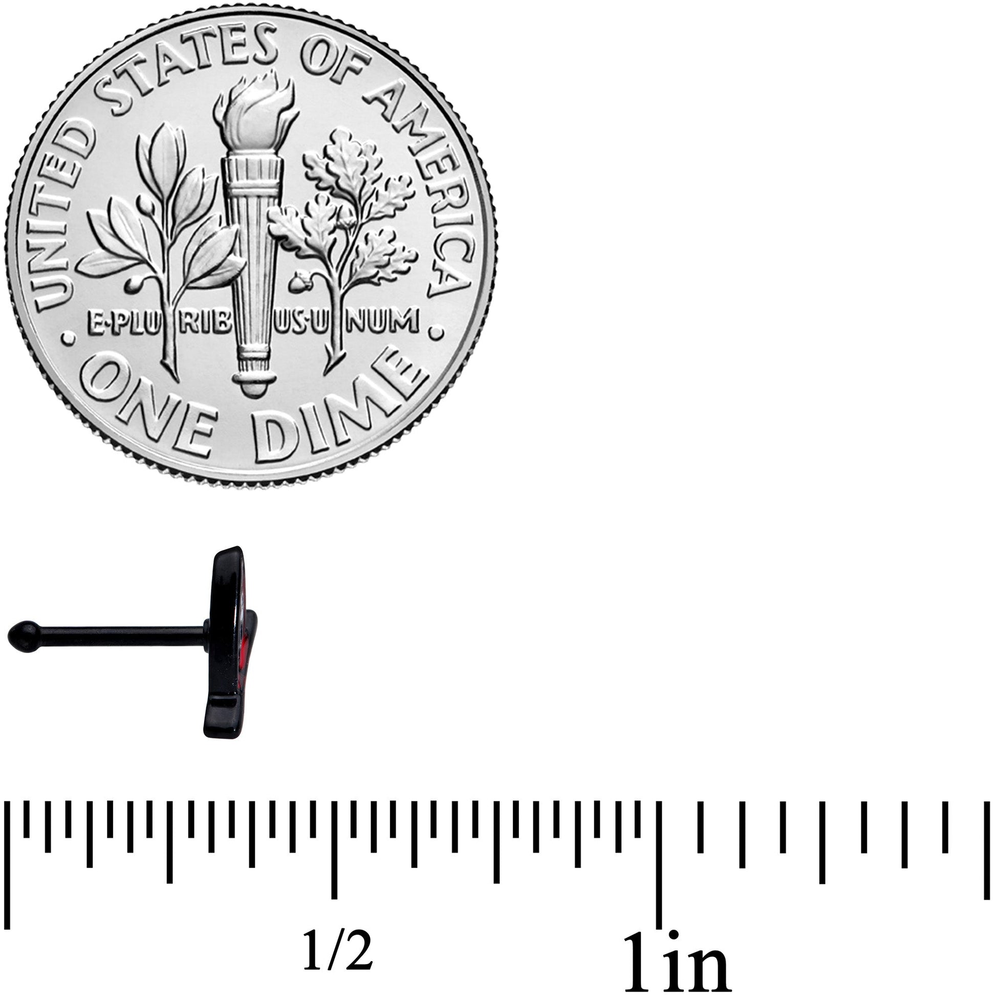 No matter how far you are from the water, you'll still be the first one on the boat with this 20 gauge nostril ring! It's made with a 6mm black PVD over 316L surgical grade stainless steel straight post. It features a red boat charm, cleverly detailed with a black paddle laid diagonally across it. Whether water sports thrill you or you're crazy for canoes and kayaks, this nautical-themed nose piercing ring is sure to make waves!Specifications