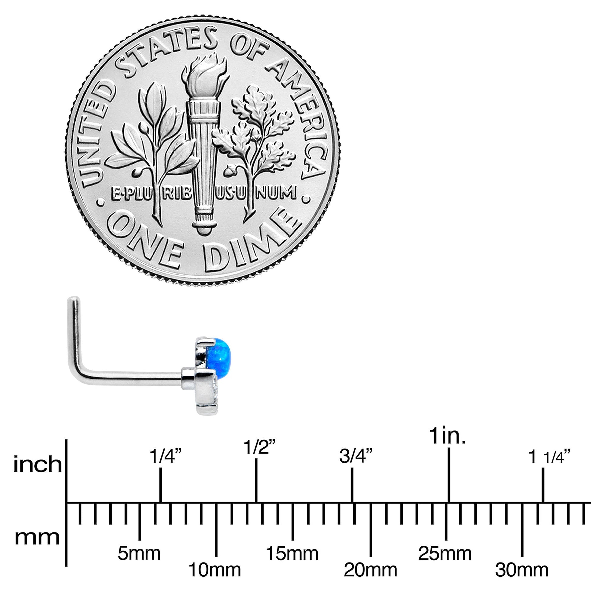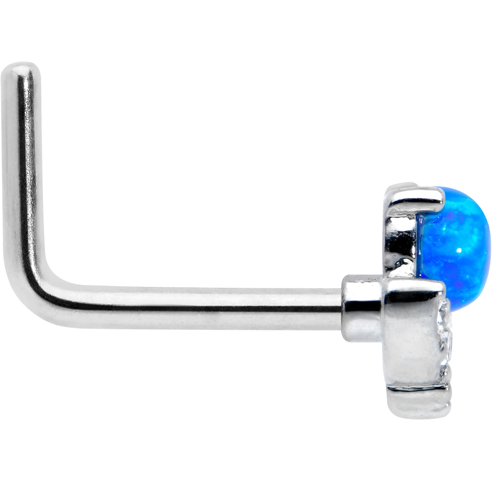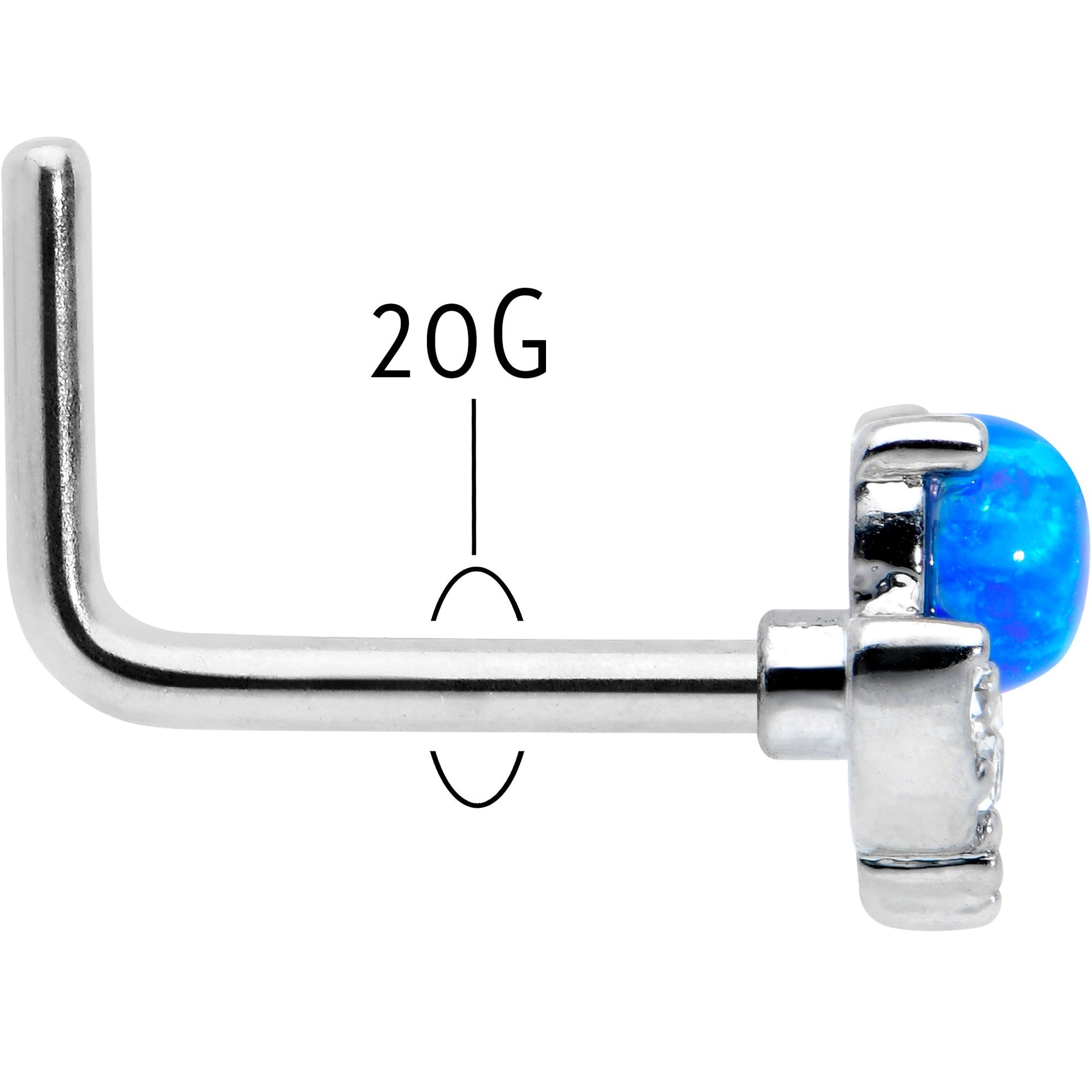 20 Gauge 1/4 Blue Synthetic Opal Style Flower L Shape Nose Ring