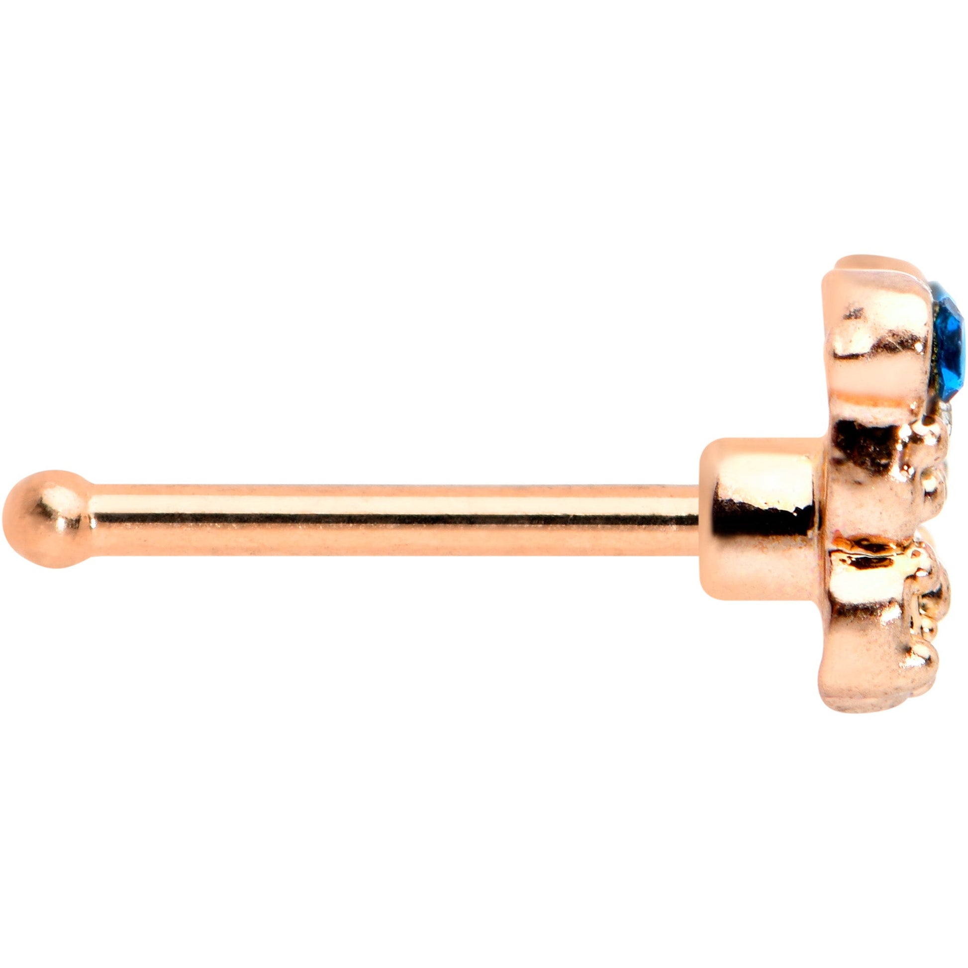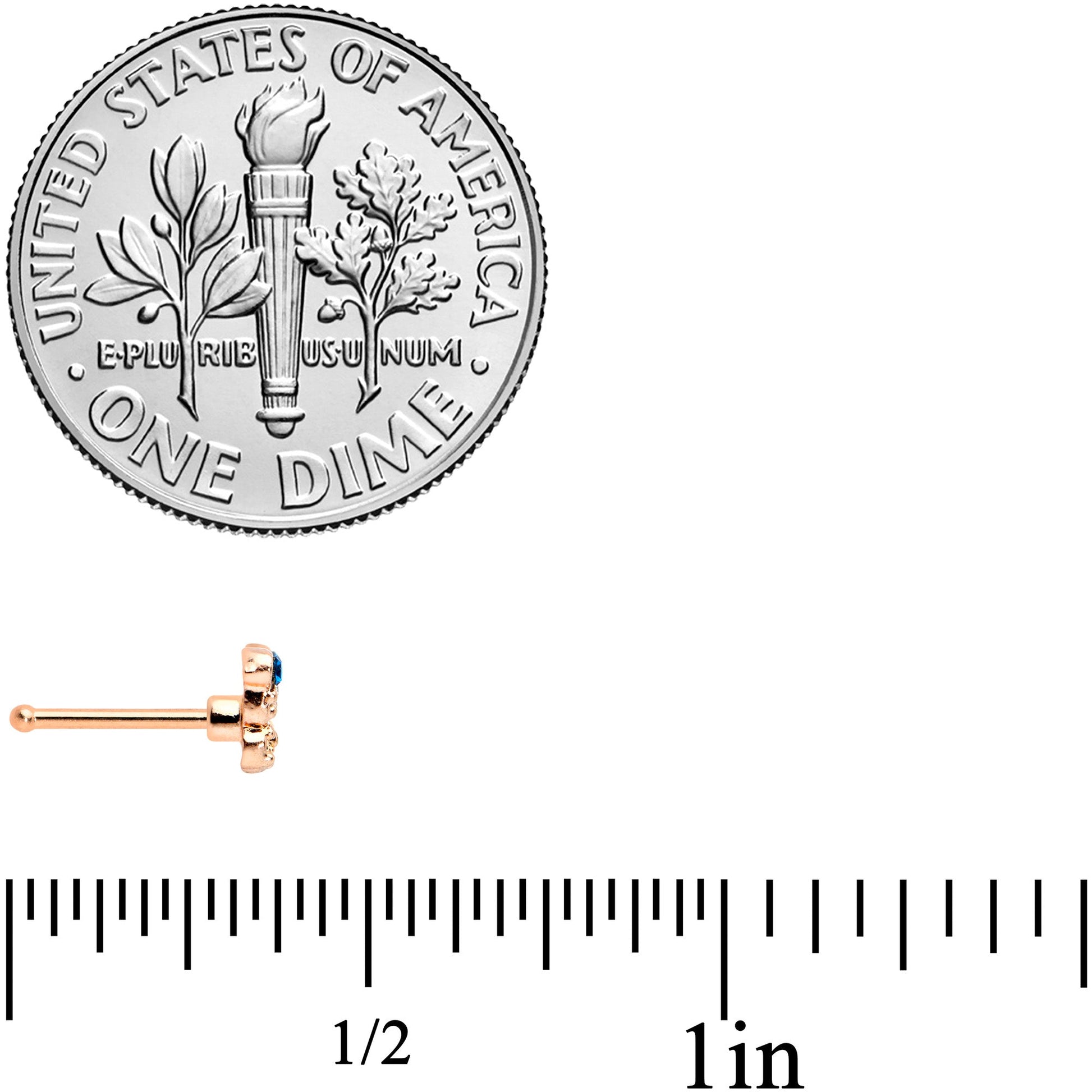 20 Gauge 1/4 Clear Blue Gem Rose Gold Tone Butterfly Wing Nose Bone