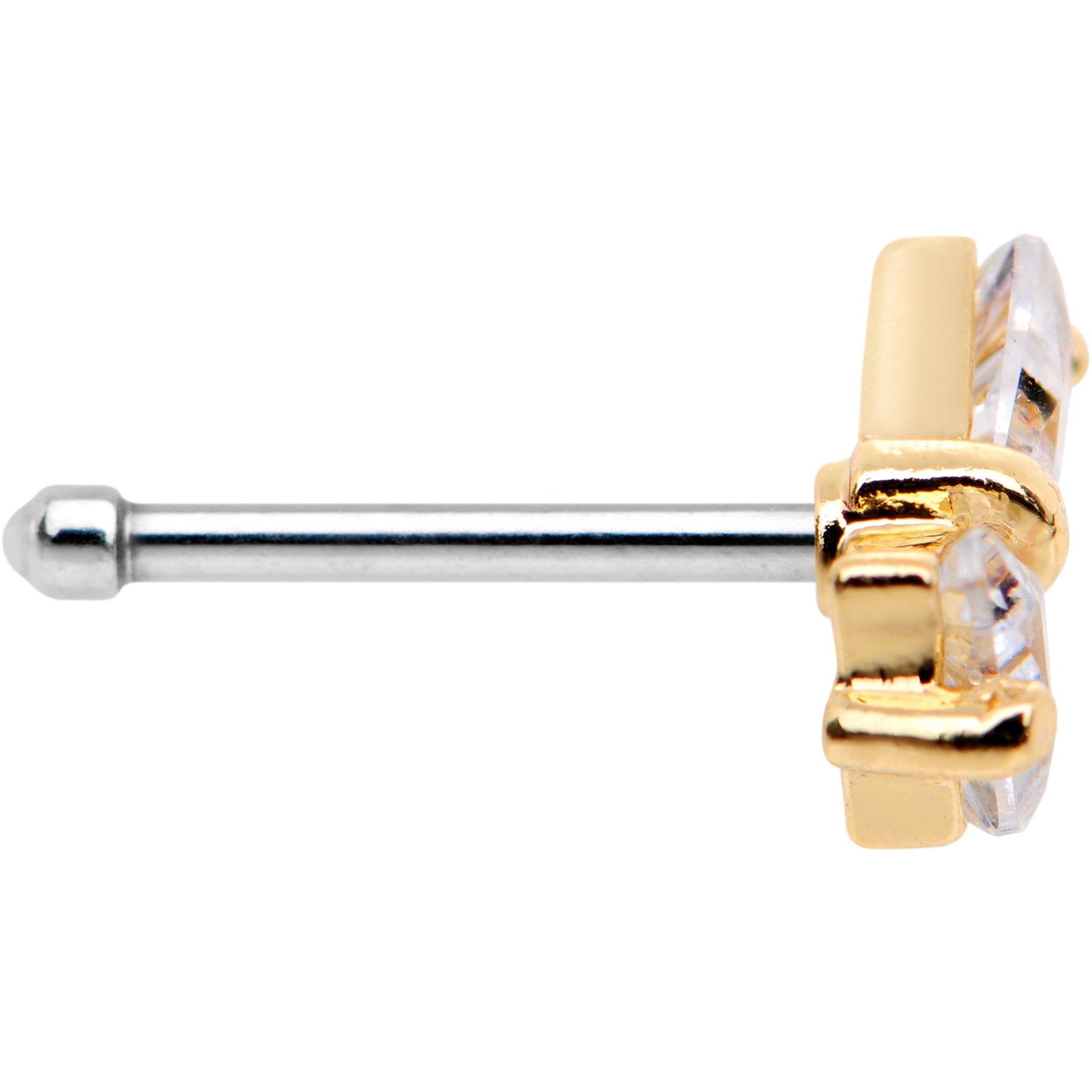 20G 1/4 Clear CZ Gem Gold Tone Bow Tie Formal Nose Bone