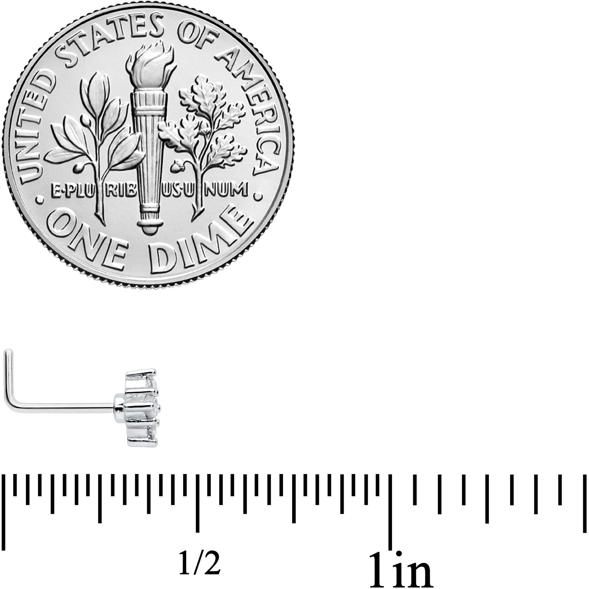 Some things are classics for a reason - like this 20 gauge nostril ring! It's made with a 6mm length at the bend 316L surgical grade stainless steel L-shaped post. It features a simple rhombus charm, set with four clear cubic zirconia gems. It also features textured embellishment at the center for a bit of contrast that really makes the whole look pop! You'll have a classic look that never goes out of style when you're rocking this timeless rhombus nose piercing jewelry!Specifications