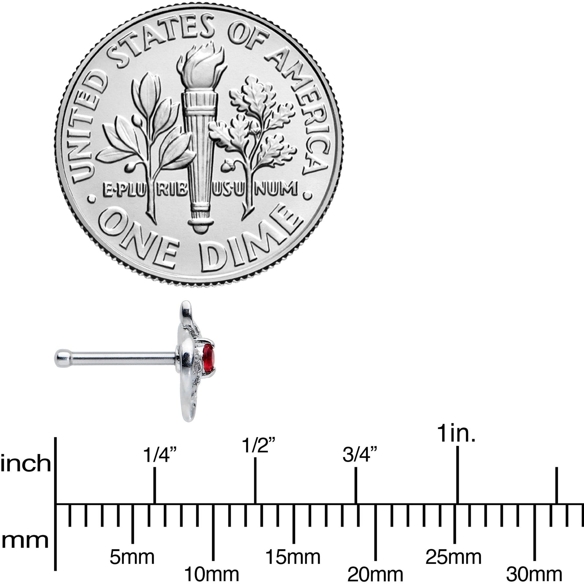 Add a bit of color to your nose piercing with this 20 gauge nostril jewelry! It's made with a 6mm durable 316L surgical grade stainless steel straight post. It features an oval charm. The oval has clear gems along the sides in an asymmetrical pattern. The oval is further embellished with a large red gem in the center. Give a new impact to your look when you're rocking this opulent, oval-themed nostril ring.Specifications