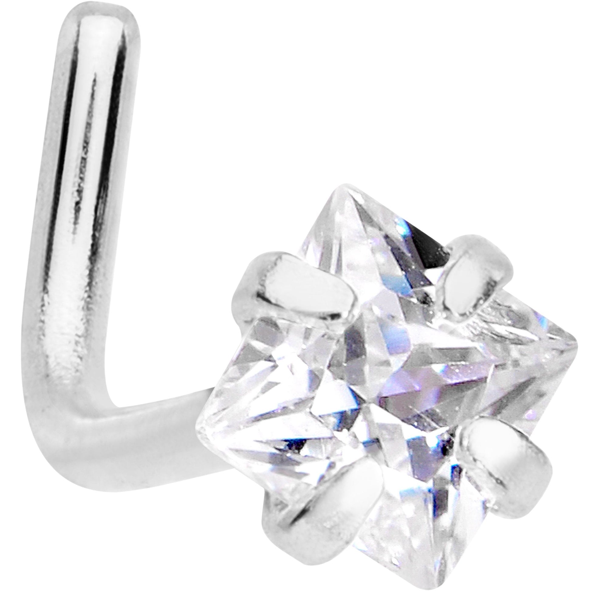 20G 1/4 Clear Square 2.5mm CZ Gem Steel L-Shape Nose Ring