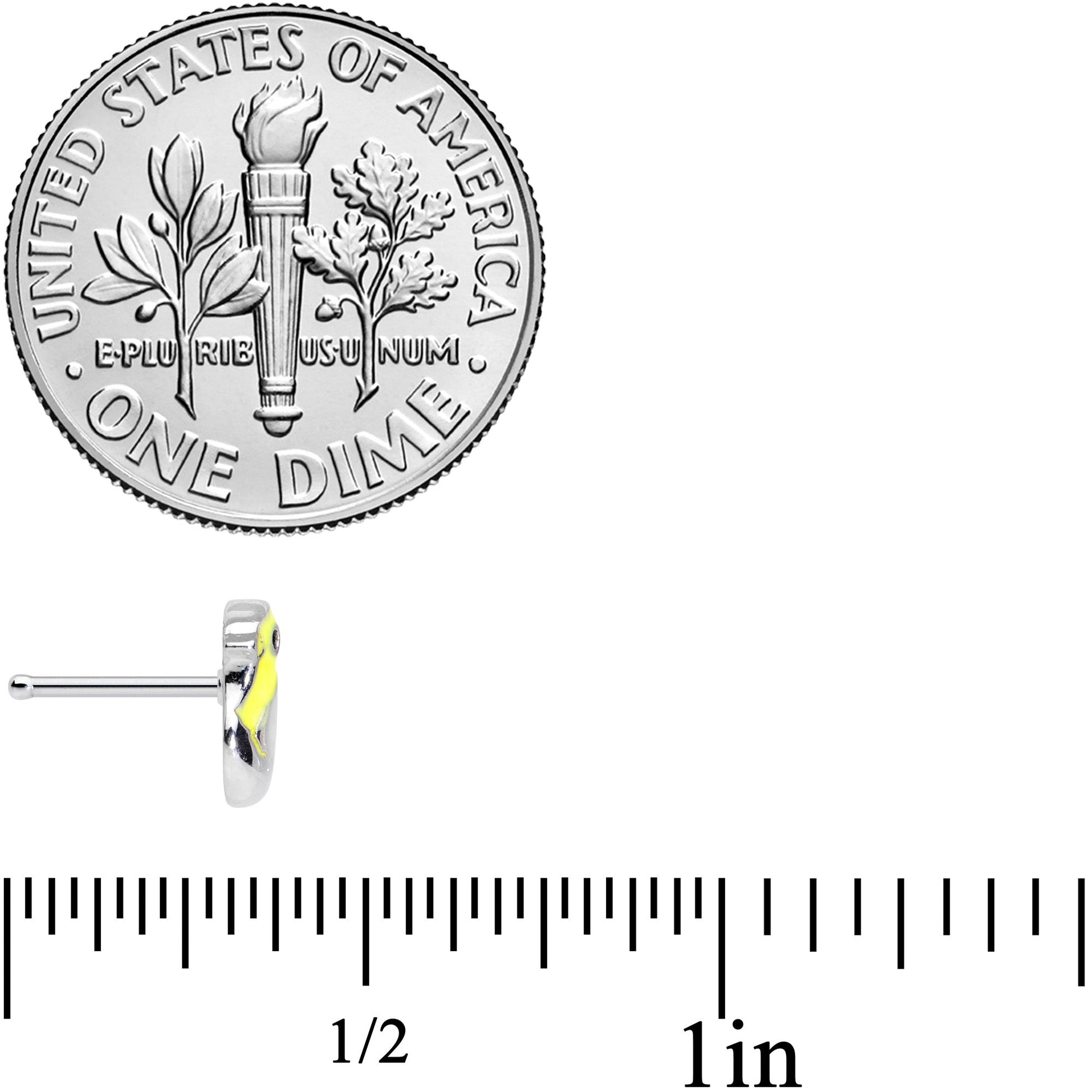 This little Easter chick is newly hatched and looking sweet on this 20 gauge nostril ring! It's made with a 6mm durable 316L surgical grade stainless steel straight post. It features a yellow chick charm, sitting in the bottom half of an egg, as though newly hatched. The chick is inlaid in yellow and embellished with a tiny black eye for added realism. Perfect for springtime, this little chick will add charm to your nose piercing!Specifications