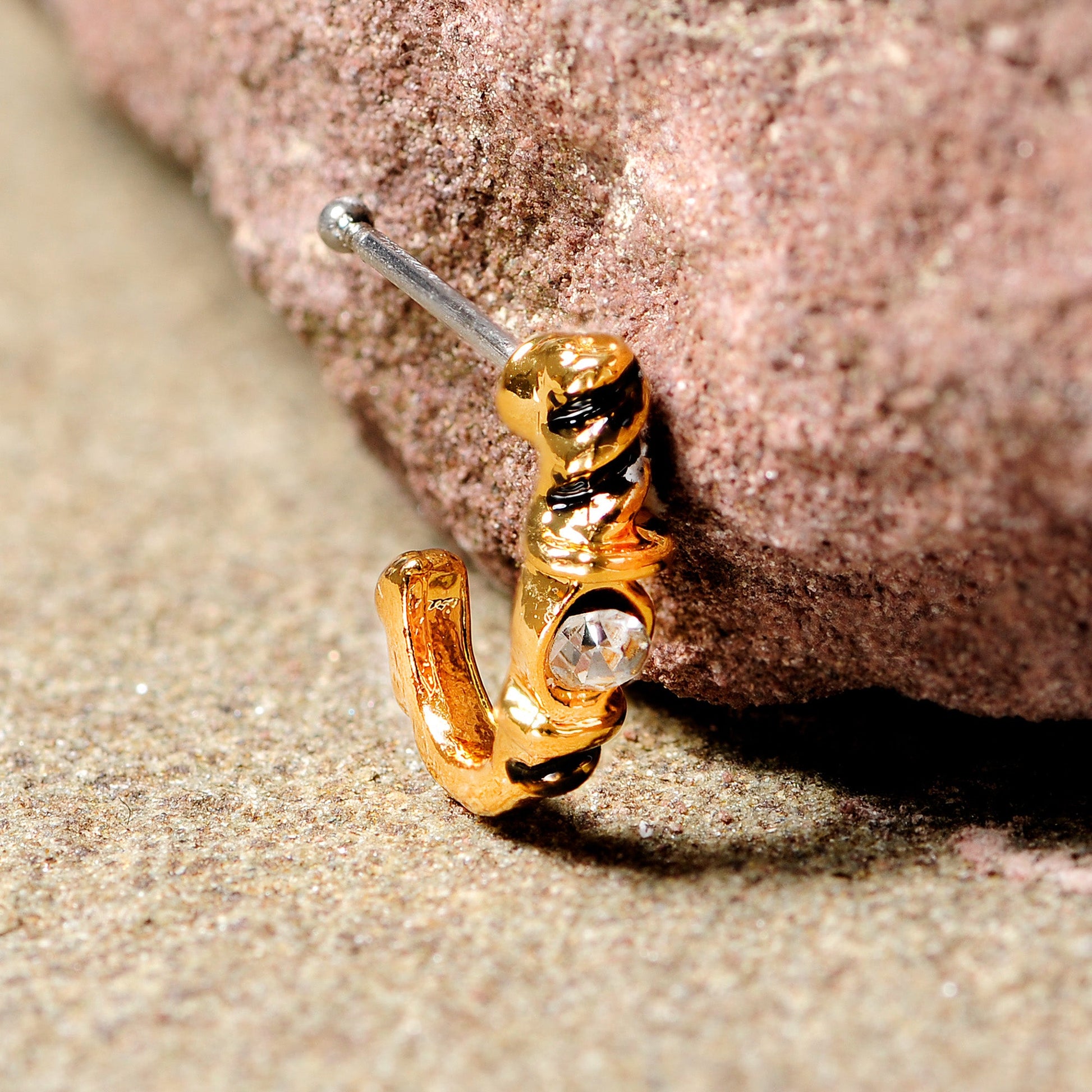 20G 3/8 Clear Gem Gold Tone Twist Faux Hoop Nose Bone