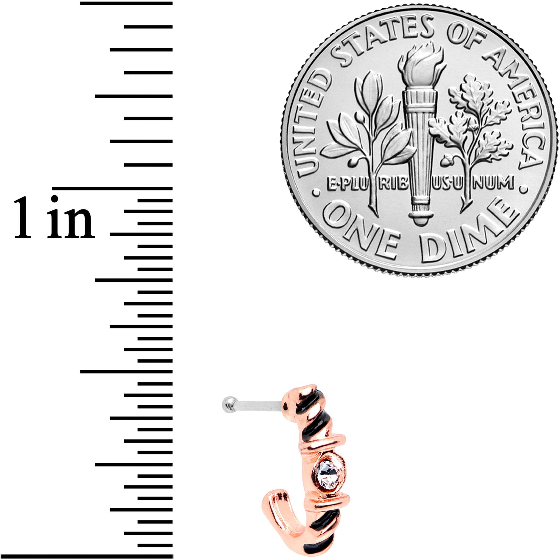 20G 3/8 Clear Gem Rose Gold Tone Twist Faux Hoop Nose Bone