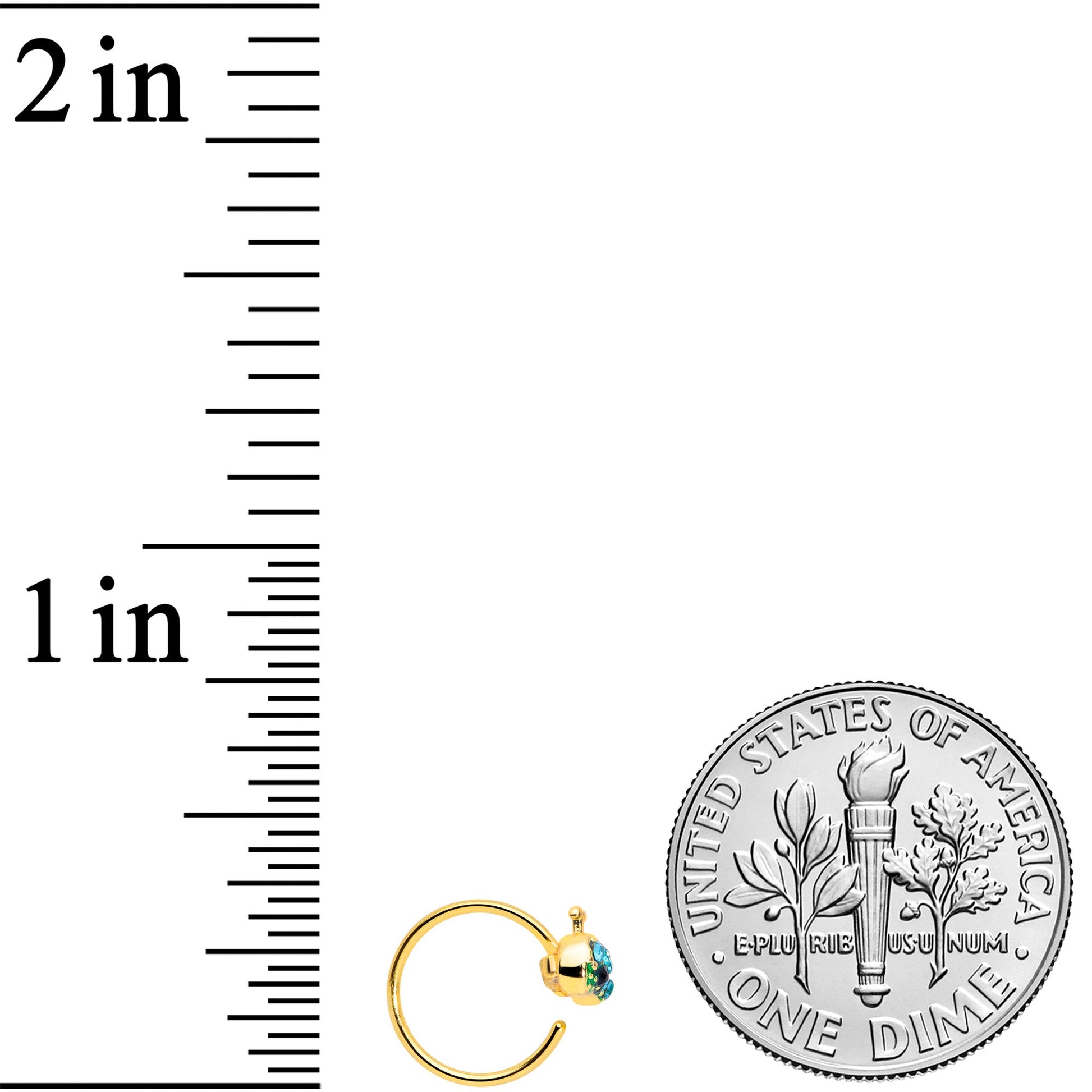 20G 5/16 Aqua Gem Gold Tone Water Whale Nose Hoop