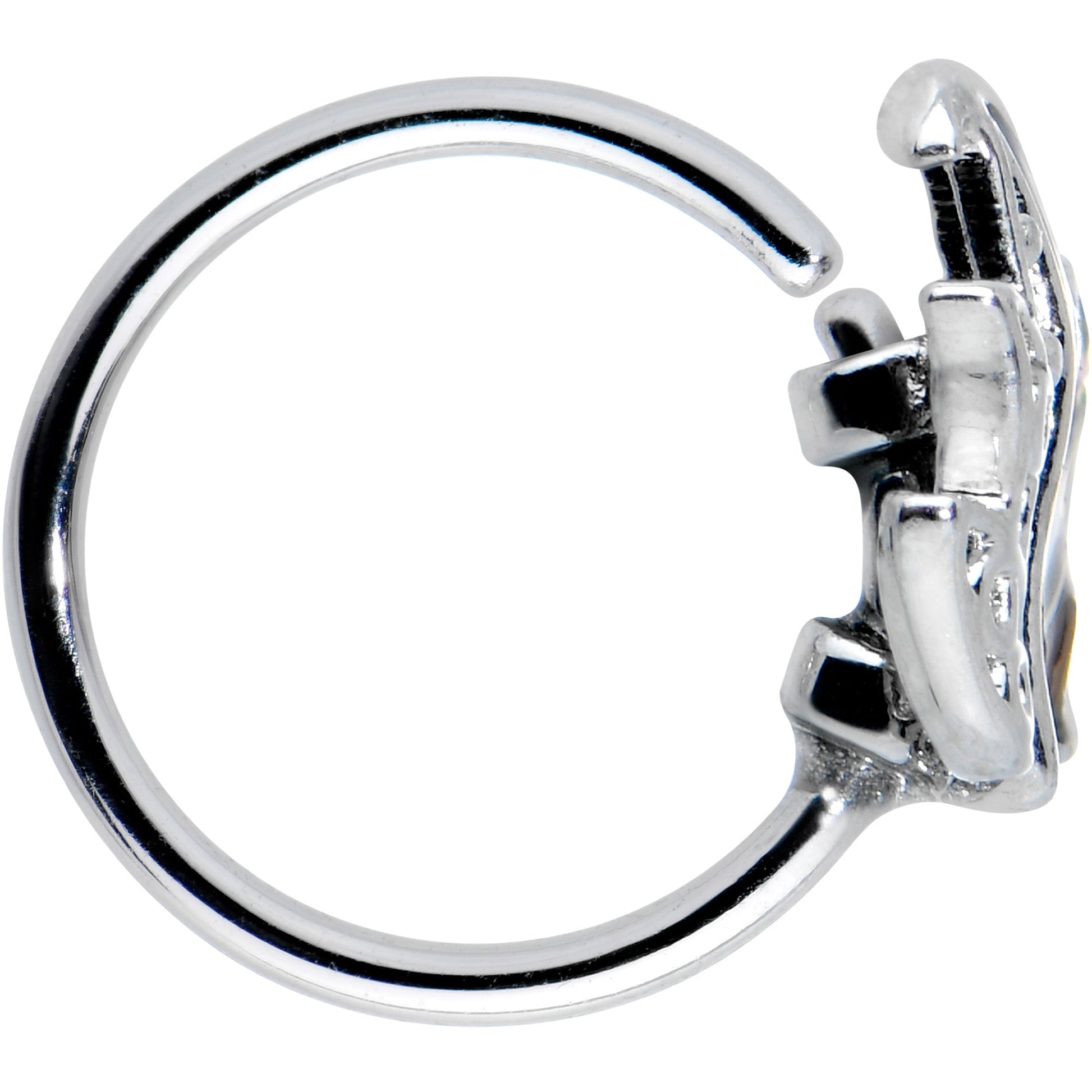 The leaves are changing color so let your nose piercing match with this 20 gauge nostril ring! It's made with an 8mm durable 316L surgical grade stainless steel circular ring. It features a maple leaf charm, with one side embellished with openwork filigree. The other side is inlaid in Fall colors for a perfectly autumnal feel. Let your nostril piercing reflect the cycle of the seasons with this multicolor maple leaf nose piercing jewelry.Specifications