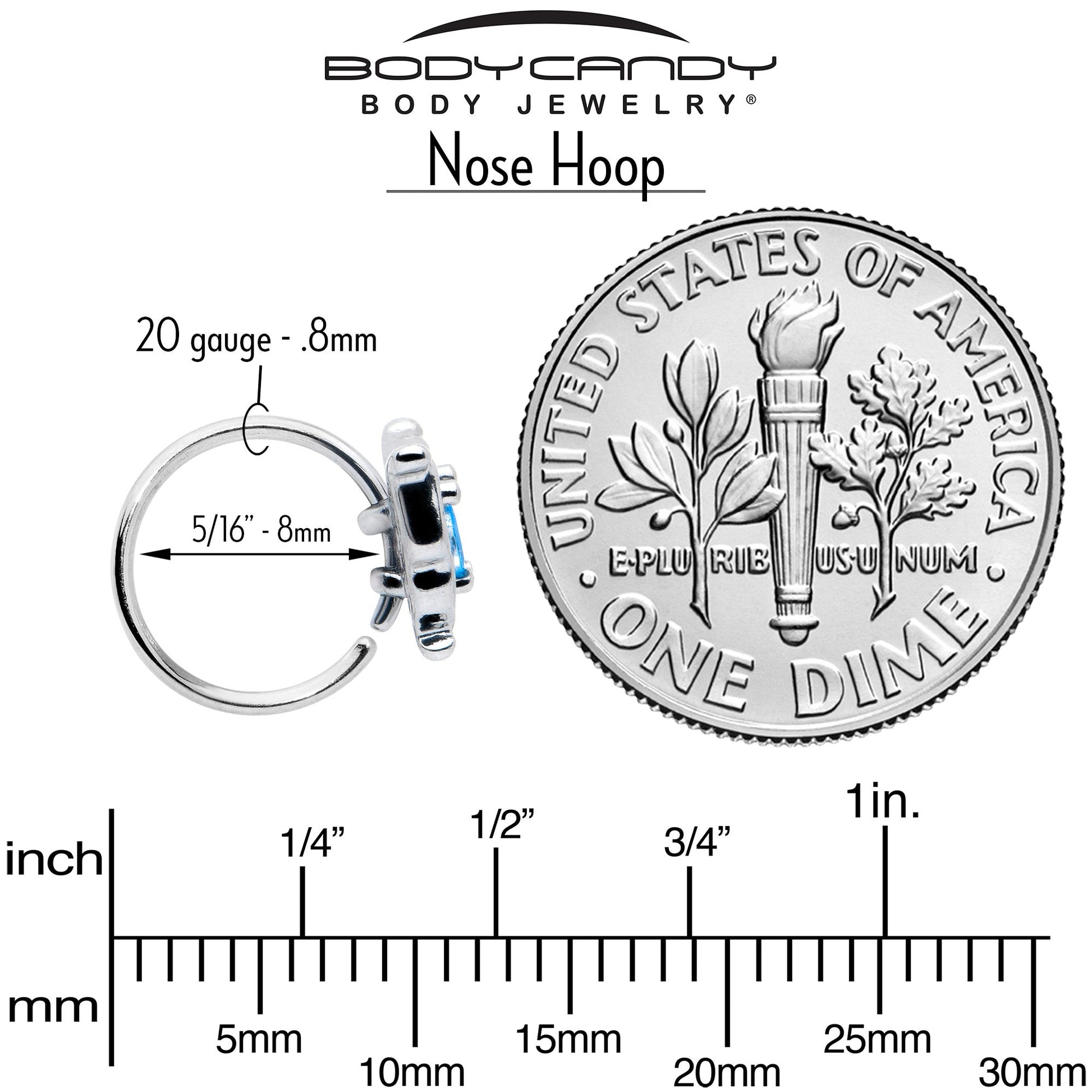 Add some butterfly fabulousness to your look with this 20 gauge nostril ring. It is made with an 8mm durable 316L surgical grade stainless steel circular ring. It features a butterfly charm, embellished with simple detailing. The wings are set with blue gems for an added touch of style. Fill your look with fabulous fashion with these lovely butterfly nose piercing jewelry.Specifications