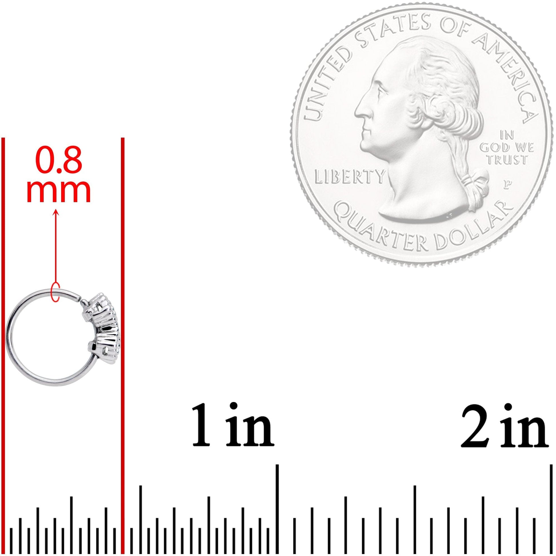 20 Gauge (0.8mm), 5/16" (8mm), 316L Surgical Grade Stainless Steel Circular Ring, Cubic Zirconia