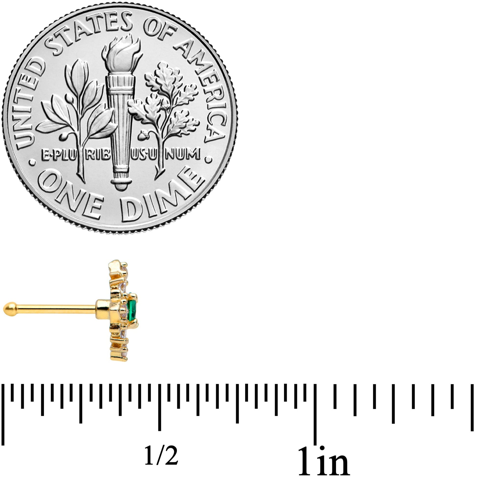 20 Gauge 5/16 Clear Green Gem Gold Tone Art Deco Nose Bone