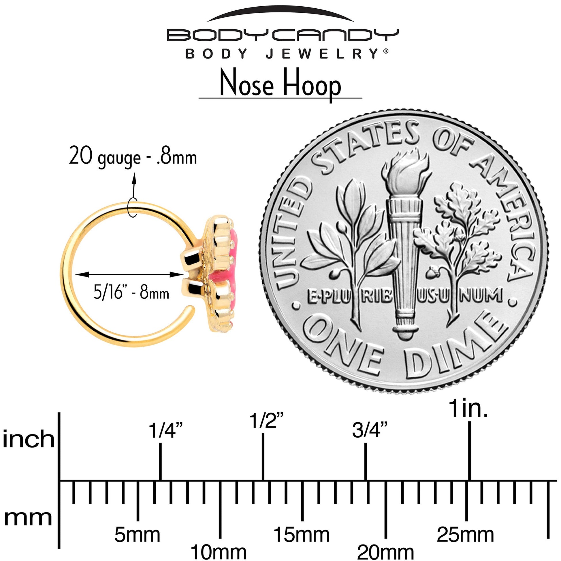20G 5/16 Gold Tone Butterfly Pink Splash Nose Hoop