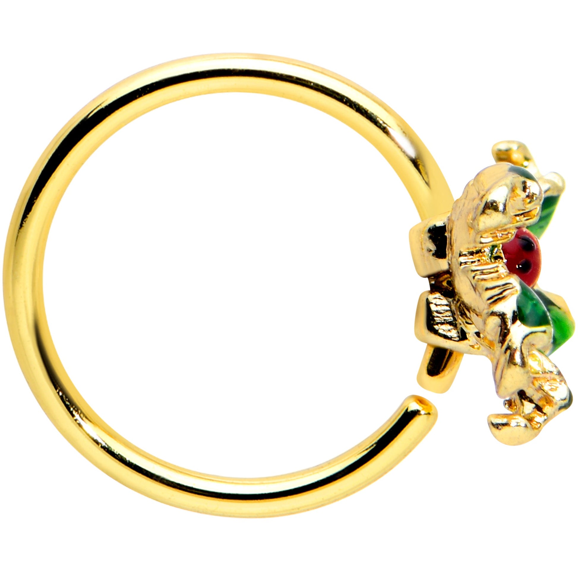 20G 5/16 Gold Tone Tiny Ladybug Leaves Nose Hoop