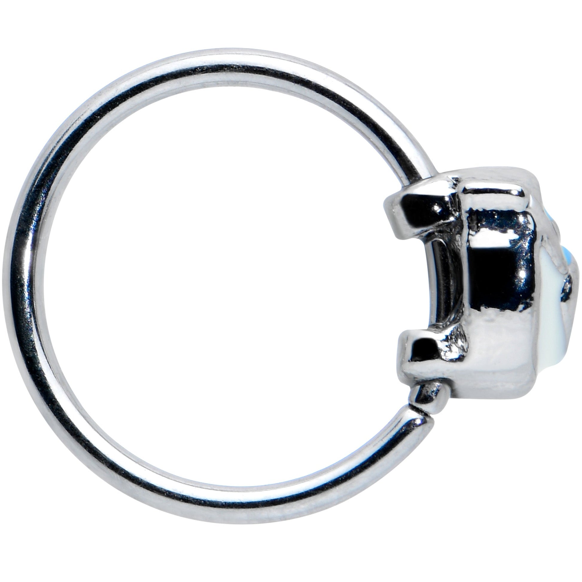 This bluebird of happiness is sure to bring you joy when you're rocking this 20 gauge nostril ring! It's made with an 8mm durable 316L surgical grade stainless steel circular ring. It features a blue bird charm, with a white belly for colorful contrast. It's further embellished with darker blue on the wing for a look of depth. This bluebird can't help but bring joy to your look when it's perched in your nose piercing!Specifications