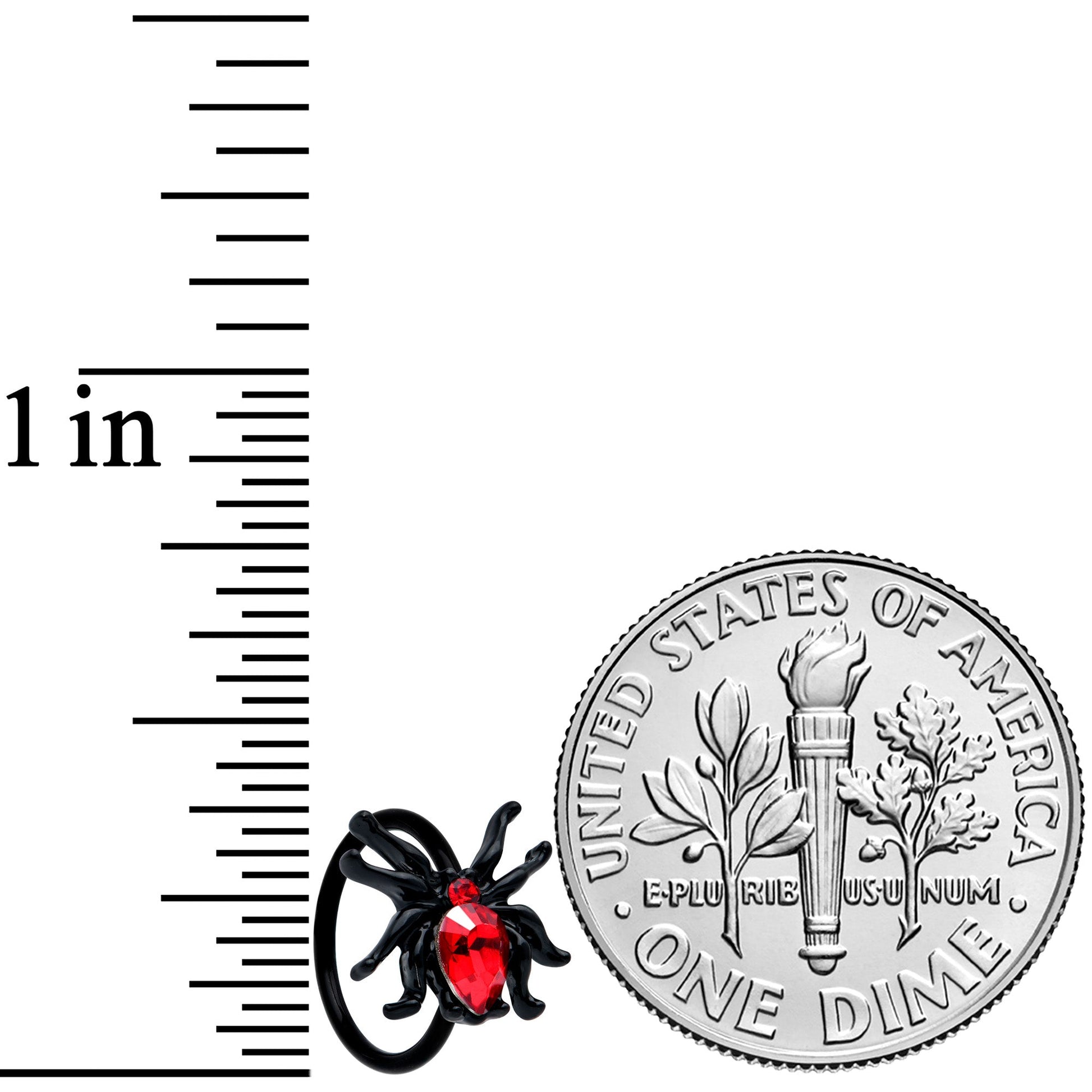 20 Gauge 5/16 Red Gem Black Sexy Little Spider Halloween Nose Hoop